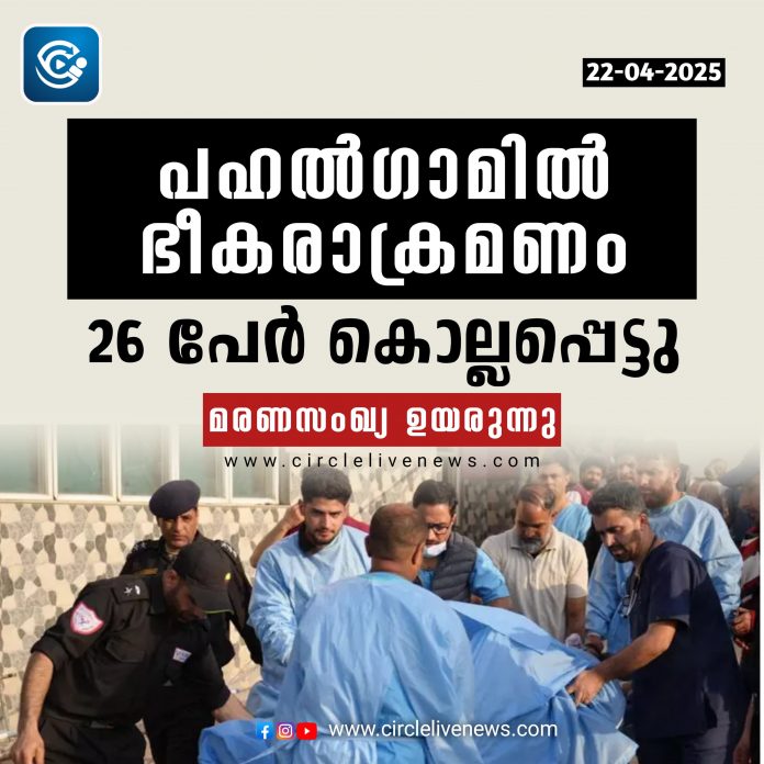 ശ്രീനഗര്: ജമ്മു കശ്മീരിലെ പഹല്ഗാമില് വിനോദ സഞ്ചാരികള്ക്കുനേരെയുണ്ടായ ഭീകരാക്രമണത്തില് 26 പേര് കൊല്ലപ്പെട്ടതായി വിവരം. അതേസമയം മരണസംഖ്യ സംബന്ധിച്ച് ഔദ്യോഗിക കണക്കുകൾ സർക്കാർ പുറത്തുവിട്ടിട്ടില്ല. മരണസംഖ്യ 20-ല് കൂടുതലാകാമെന്ന് ഒരു ഉന്നത ഉദ്യോഗസ്ഥനെ ഉദ്ധരിച്ച് പിടിഐ റിപ്പോര്ട്ട് ചെയ്തു. നിരവധി ആളുകള്ക്ക് പരിക്കേല്ക്കുകയും ചെയ്തിട്ടുണ്ട്. ജമ്മുകശ്മീരില് 2019ന് ശേഷം നടക്കുന്ന ഏറ്റവും വലിയ ഭീകരാക്രമണമാണ് പഹല്ഗാമില് നടന്നത്. ജമ്മു കശ്മീരിലെ പഹല്ഗാമിലുള്ള ബൈസാറനിലാണ് ഭീകരാക്രമണം ഉണ്ടായത്. വിനോദ സഞ്ചാരികള്ക്ക് നേരെ ഭീകരര് വെടിയുതിര്ക്കുകയായിരുന്നുവെന്നാണ് പ്രാഥമിക വിവരം. ഭീകരാക്രമണത്തെ തുടര്ന്ന് പ്രദേശത്ത് നിരവധി വിനോദ സഞ്ചാരികള് കുടുങ്ങിയിട്ടുണ്ട്. ഇതില് മലയാളികളും ഉള്പ്പെട്ടിട്ടുണ്ടെന്നാണ് സ്ഥിരീകരിക്കാത്ത വിവരം. സമീപ വര്ഷങ്ങളില് സാധാരണക്കാരെ ലക്ഷ്യംവെച്ച് നടന്ന ആക്രമണത്തേക്കാള് വളരെ വലുതാണ് പഹല്ഗാമിലുണ്ടായതെന്ന് ജമ്മു കശ്മീര് മുഖ്യമന്ത്രി ഒമര് അബ്ദുള്ള പറഞ്ഞിരുന്നു.