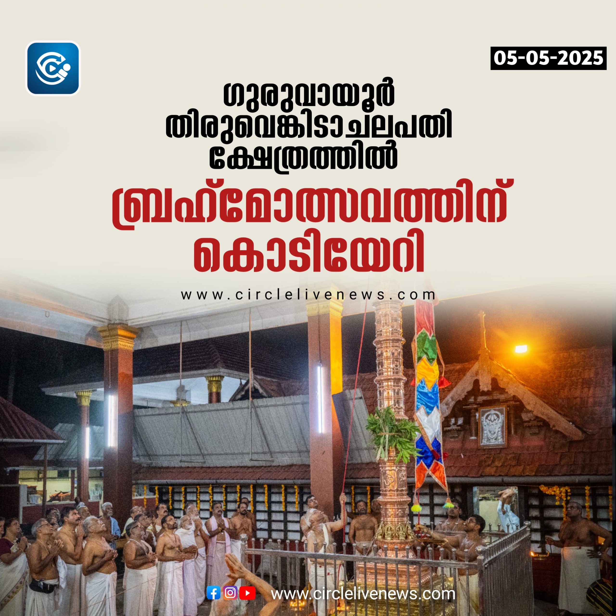 ഗുരുവായൂർ തിരുവെങ്കിടാചലപതി ക്ഷേത്രത്തിൽ ബ്രഹ്മോത്സവത്തിന് കൊടിയേറി