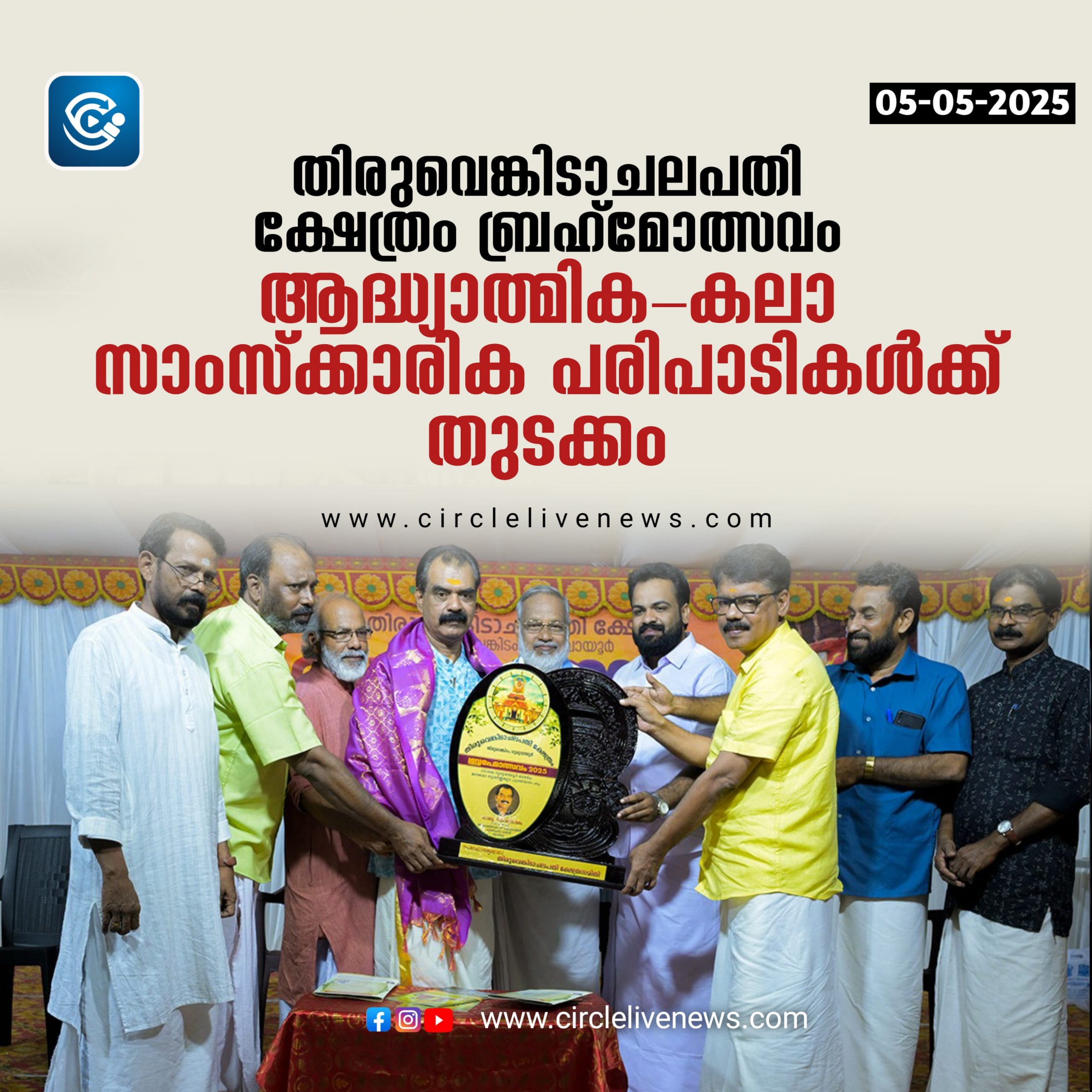 ഗുരുവായൂർ: തിരുവെങ്കിടാചലപതി ക്ഷേത്രം ബ്രഹ്മോത്സവത്തോടനുബന്ധിച്ച് ആദ്ധ്യാത്മിക- കലാ സാംസ്ക്കാരിക പരിപാടികൾക്ക് തുടക്കമായി. ക്ഷേത്രാങ്കണത്തിൽ പ്രത്യേകം സജ്ജമാക്കിയ വേദിയിൽ ഗുരുവായൂർ ക്ഷേത്രം ഊരാളനും ഭരണ സമിതി സ്ഥിരാംഗവുമായ മല്ലിശ്ശേരി പരമേശ്വരൻ നമ്പൂതിരിപ്പാട് ദീപോ ജ്വലനം നടത്തി ഉൽഘാടനം ചെയ്തു. ക്ഷേത സമിതി പ്രസിഡണ്ട് ശശി വാറണാട്ട് അധ്യക്ഷത വഹിച്ചു. ഗുരുവായൂർ ദേവസ്വം കൃഷ്ണനാട്ട ഉന്നത പുരസ്ക്കാരമായ ശ്രീ മാനദേവ സുവർണ്ണ മുദ്ര കരസ്ഥമാക്കിയ കലാനിലയംചുട്ടി വിഭാഗം മേധാവിയായിരുന്ന തിരുവെങ്കിടാചലപതി ക്ഷേത്ര സമിതി അംഗം രാജു കലാനിലയത്തിന് സ്നേഹാദരം നൽകി അനുമോദിച്ചു. ഗുരുവായൂർ ദേവസ്വം ഭരണസമിതി അംഗം സി. മനോജ് മുഖ്യാതിഥിയായി ഉപഹാര സമർപ്പണവും നടത്തി.നഗരസഭ കൗൺസിലർ വി.കെ.സുജിത്ത്, എഴുത്തുകാരൻ മുരളി പുറനാട്ടുകര എന്നിവർ സംസാരിച്ചു. ബാലൻ വാറണാട്ട് ആമുഖപ്രസംഗം നടത്തി. സെക്രട്ടറി പ്രഭാകരൻ മണ്ണൂർ സ്വാഗതവും പ്രോഗ്രാം കൺവീനർ വിനോദ് കുമാർ അകമ്പടി നന്ദിയും പറഞ്ഞു. ഉപഹാര ജേതാവ് ഇ രാജു മറുപടി പ്രസംഗവും സന്തോഷ് ഗുരുവായൂർ പ്രാർത്ഥനാ ഗാനാലാപനവും നടത്തി.തുടർന്ന് വിവിധ കലാപരിപാടികൾ അരങ്ങേറ്റ. സേതു തിരുവെങ്കിടം, ശിവൻ കണിച്ചാടത്ത്, ഹരി കൂടത്തിങ്കൽ, രാജു പെരുവഴിക്കാട്ട്, പി.ഹരി നാരായണൻ, ടി.കെ അനന്തകൃഷ്ണൻ, പി രാഘവൻ നായർ എന്നിവർ നേതൃത്വം നൽകി.