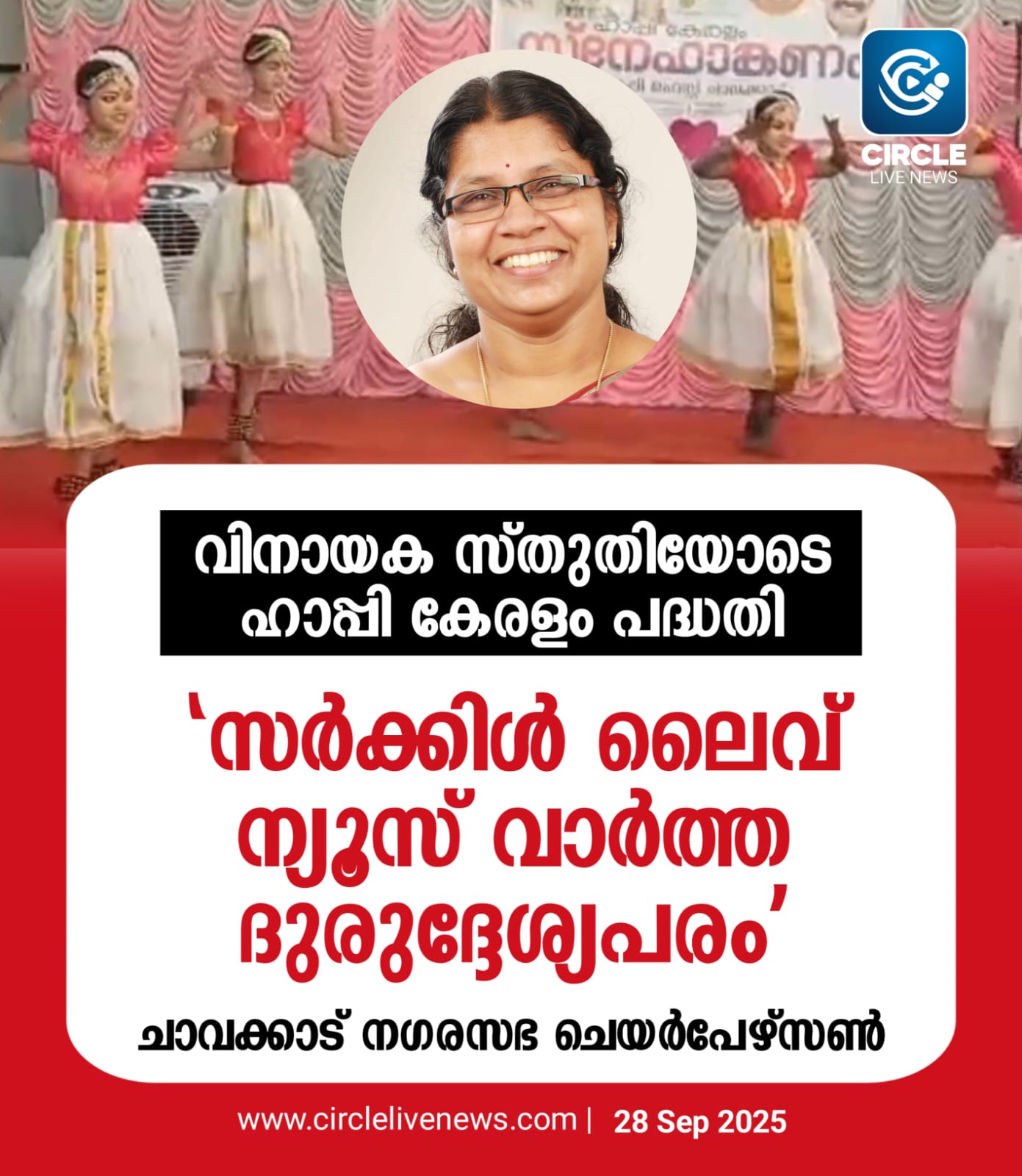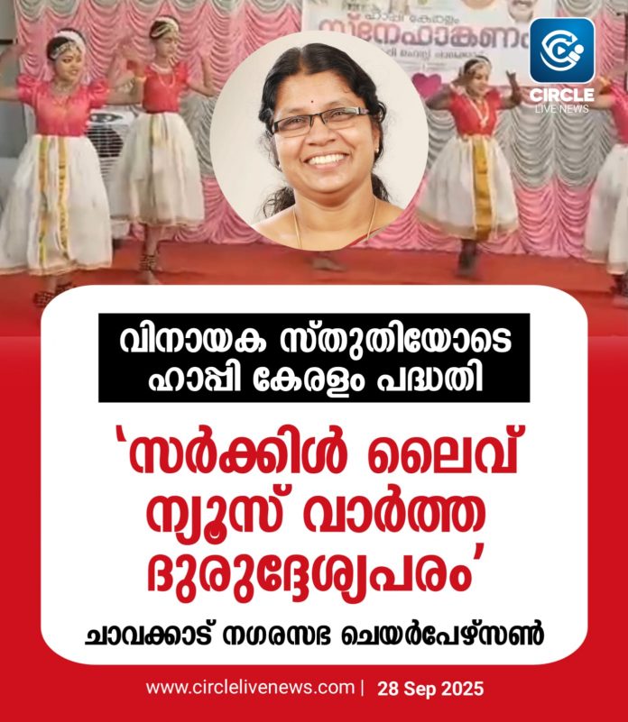‘വിനായക സ്തുതി’യോടെ ഹാപ്പി കേരളം പദ്ധതി; ‘ സർക്കിൾ ലൈവ് ന്യൂസ് വാർത്ത ദുരുദ്ദേശ്യപരം’- ചാവക്കാട് നഗരസഭ ചെയർപേഴ്സൺ.