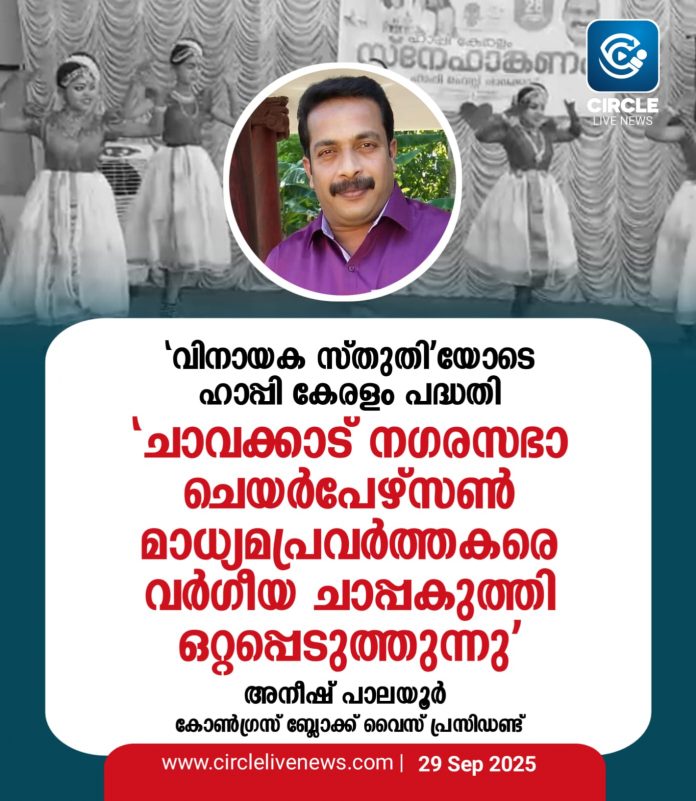 ‘ചാവക്കാട് നഗരസഭാ ചെയർപേഴ്സൺ മാധ്യമപ്രവർത്തകരെ വർഗീയ ചാപ്പകുത്തി ഒറ്റപ്പെടുത്തുന്നു’ – അനീഷ് പാലയൂർ (കോൺഗ്രസ് ബ്ലോക്ക് വൈസ് പ്രസിഡണ്ട്)