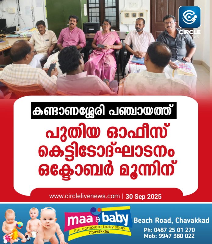 ഗുരുവായൂർ: കണ്ടാണശ്ശേരി പഞ്ചായത്ത് പുതിയ ഓഫീസ് കെട്ടിടത്തിന്റ ഉദ്ഘാടനം ഒക്ടോബർ മൂന്നിന് തദ്ദേശ വകുപ്പ് മന്ത്രി എം.ബി രാജേഷ് നിർഹിക്കുമെന്ന് പ്രസിഡന്റ് മിനി ജയൻ വാർത്താ സമ്മേളനത്തിൽ അറിയിച്ചു. വൈകീട്ട് 5.30 ന് കണ്ടാണശ്ശേരി പഞ്ചായത്ത് ഓഫീസ് പരിസരത്ത് നടക്കുന്ന ചടങ്ങിൽ മുരളി പെരുനെല്ലി എം.എൽ.എ അധ്യക്ഷത വഹിക്കും. പട്ടികജാതി പട്ടികവർഗ്ഗ കമ്മീഷൻ അംഗം ടി.കെ വാസു, ബി.എഫ്.എ.സി അംഗം എം ബാലാജി എന്നിവർ മുഖ്യാതിഥികളാകും. ചടങ്ങിൽ തദ്ദേശസ്ഥാപന അധ്യക്ഷന്മാർ, ജനപ്രതിനിധികൾ, രാഷ്ട്രീയപാർട്ടി പ്രതിനിധികൾ, സാംസ്കാരിക പ്രവർത്തകർ തുടങ്ങിയവർ പങ്കെടുക്കും. ഒരു കോടി രൂപ ചെലവഴിച്ചാണ് പഞ്ചായത്തിന്റെ പുതിയ ഓഫീസ് കെട്ടിടം നിർമ്മിച്ചിട്ടുള്ളത്. പഞ്ചായത്ത് വൈസ് പ്രസിഡന്റ് എൻ.എസ് ധനൻ, ക്ഷേമകാര്യ സ്റ്റാൻഡിങ് കമ്മിറ്റി ചെയർമാൻ എൻ.എ ബാലചന്ദ്രൻ, മെമ്പർ പി.കെ അസീസ്, സംഘാടകസമിതി കൺവീനറായ പഞ്ചായത്ത് സെക്രട്ടറി കെ.കെ രാധാകൃഷ്ണൻ എന്നിവരും വാർത്താ സമ്മേളനത്തിൽ പങ്കെടുത്തു.