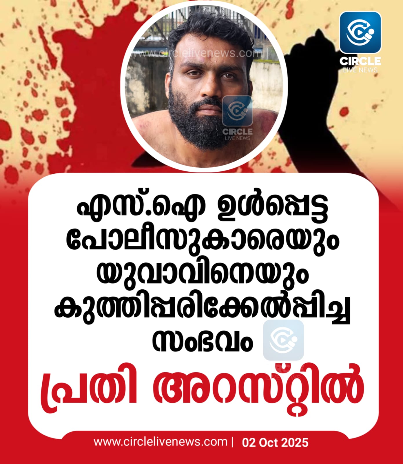 എസ്.ഐ ഉൾപ്പെട്ട പോലീസുകാരെയും യുവാവിനെയും കുത്തിപ്പരിക്കേൽപ്പിച്ച സംഭവം; പ്രതി അറസ്റ്റിൽ