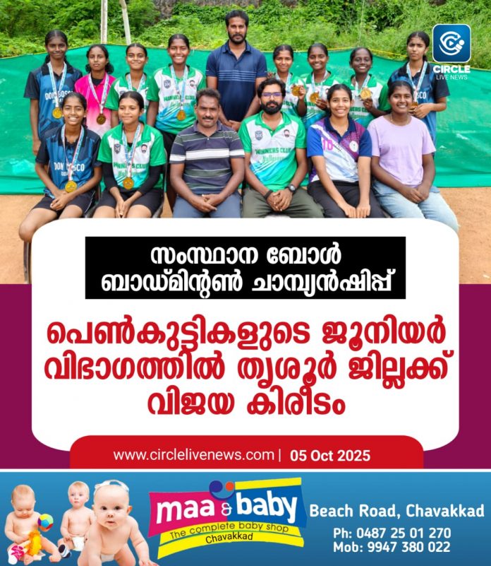 സംസ്ഥാന ബോൾ ബാഡ്മിൻ്റൺ ചാമ്പ്യൻഷിപ്പ്; പെൺകുട്ടികളുടെ ജൂനിയർ വിഭാഗത്തിൽ തൃശൂർ ജില്ലക്ക് വിജയ കിരീടം