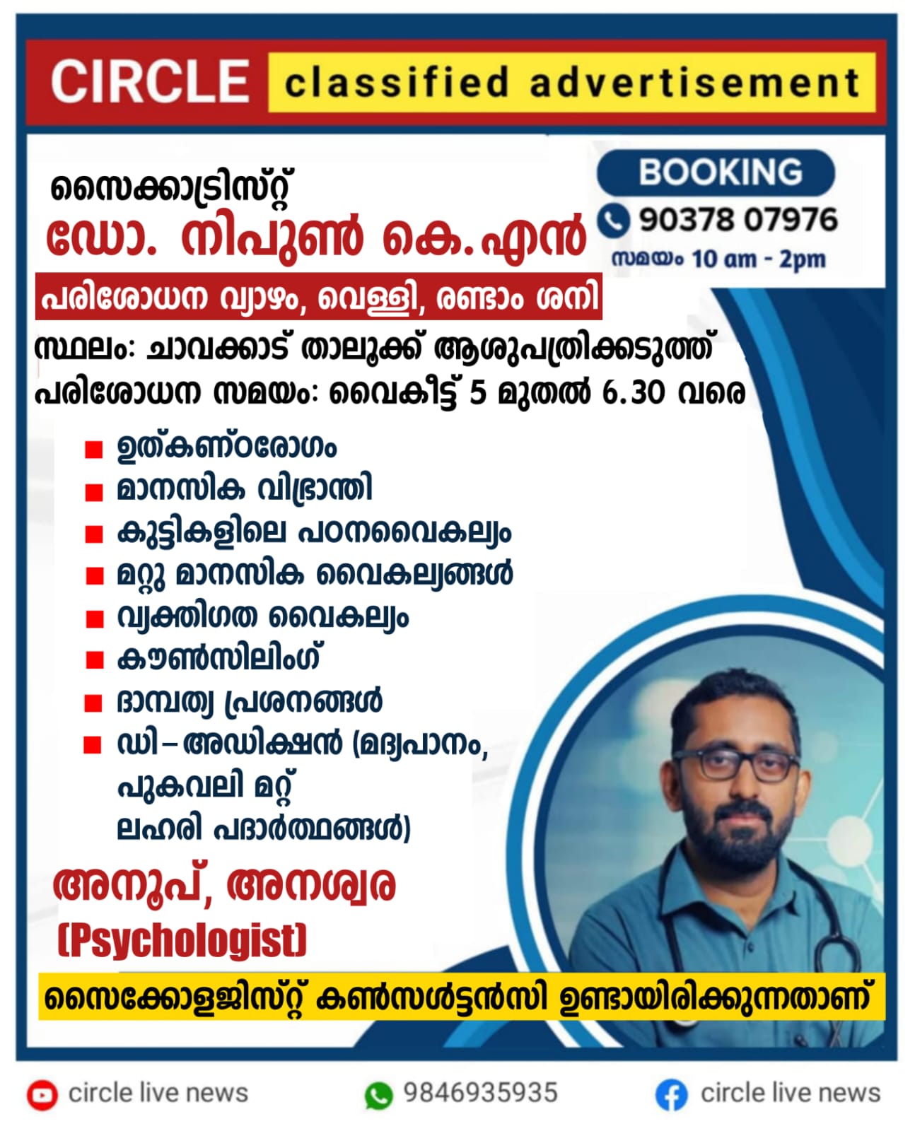 സൈക്കാട്രിസ്റ്റ് ഡോ. നിപുൺ കെ.എൻ
