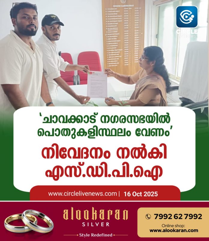 ചാവക്കാട്: ചാവക്കാട് നഗരസഭയിൽ പൊതുകളിസ്ഥലം വേണമെന്ന ആവശ്യവുമായി എസ്.ഡി.പി.ഐ രംഗത്ത്. ഈ ആവശ്യം ഉന്നയിച്ച് ചാവക്കാട് നഗരസഭ ചെയർപേഴ്സന് എസ്.ഡി.പി.ഐ മുൻസിപ്പൽ കമ്മിറ്റി ഭാരവാഹികൾ നിവേദനം നൽകി. നഗരസഭ പരിധിയിൽ പൊതു കളിസ്ഥലങ്ങൾ ഇല്ലാത്തതും നിലവിലുണ്ടായിരുന്ന കളിസ്ഥലം മറ്റ് ആവശ്യങ്ങൾക്കായി മാറ്റിയതും മൂലം കായിക പ്രതിഭകൾ പ്രയാസം അനുഭവിക്കുകയാണെന്ന് നിവേദനത്തിൽ ചൂണ്ടിക്കാട്ടി. എസ്.ഡി.പി.ഐ മുനിസിപ്പൽ കമ്മിറ്റി വൈസ് പ്രസിഡന്റ് ദിലീപ് അത്താണി, നഗരസഭ ചെയർപേഴ്സൺ ഷീജ പ്രശാന്തിന് നിവേദനം കൈമാറി.