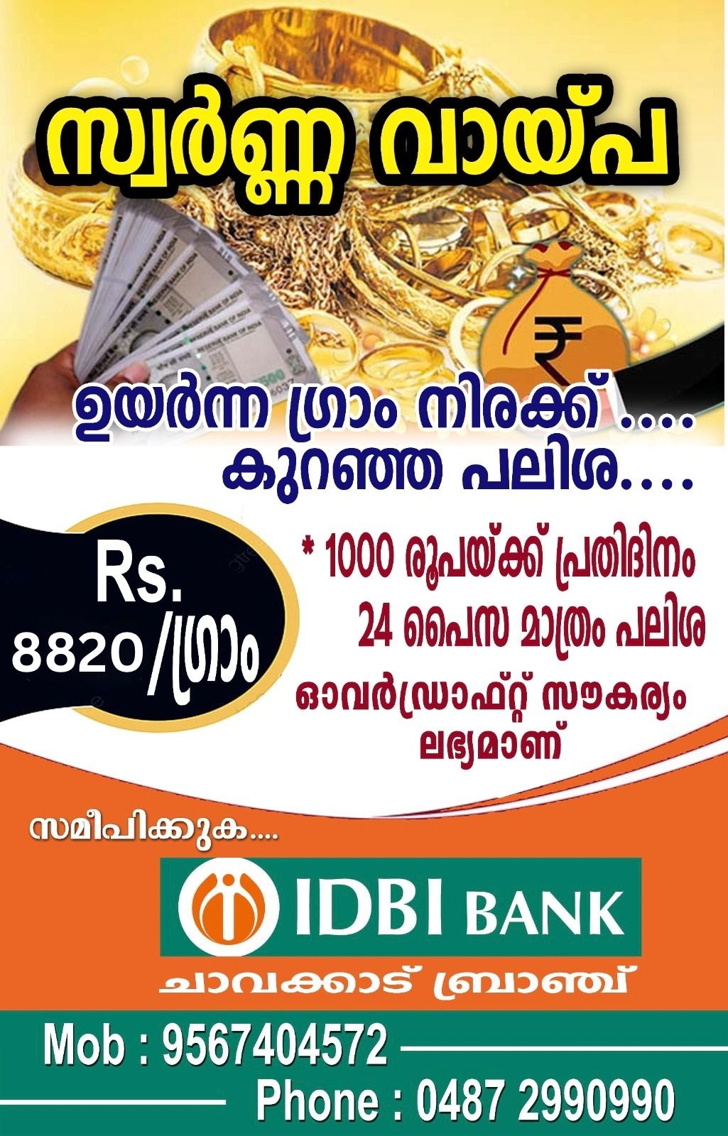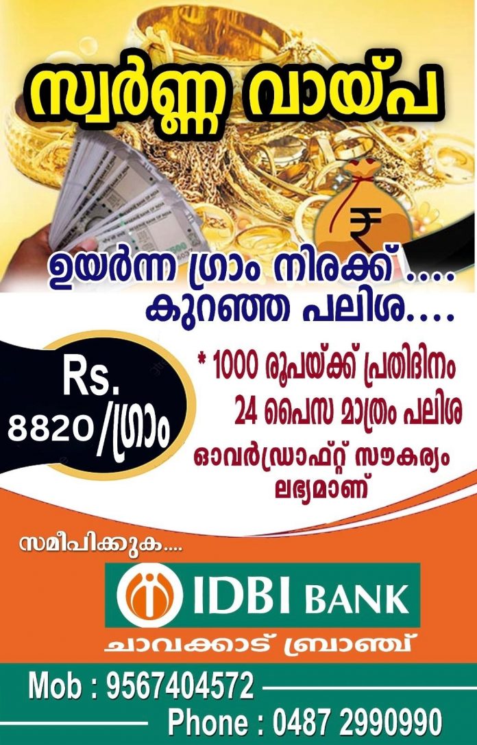 ഉയർന്ന ഗ്രാം നിരക്കിൽ സ്വർണ്ണ വായ്പ നേടാം