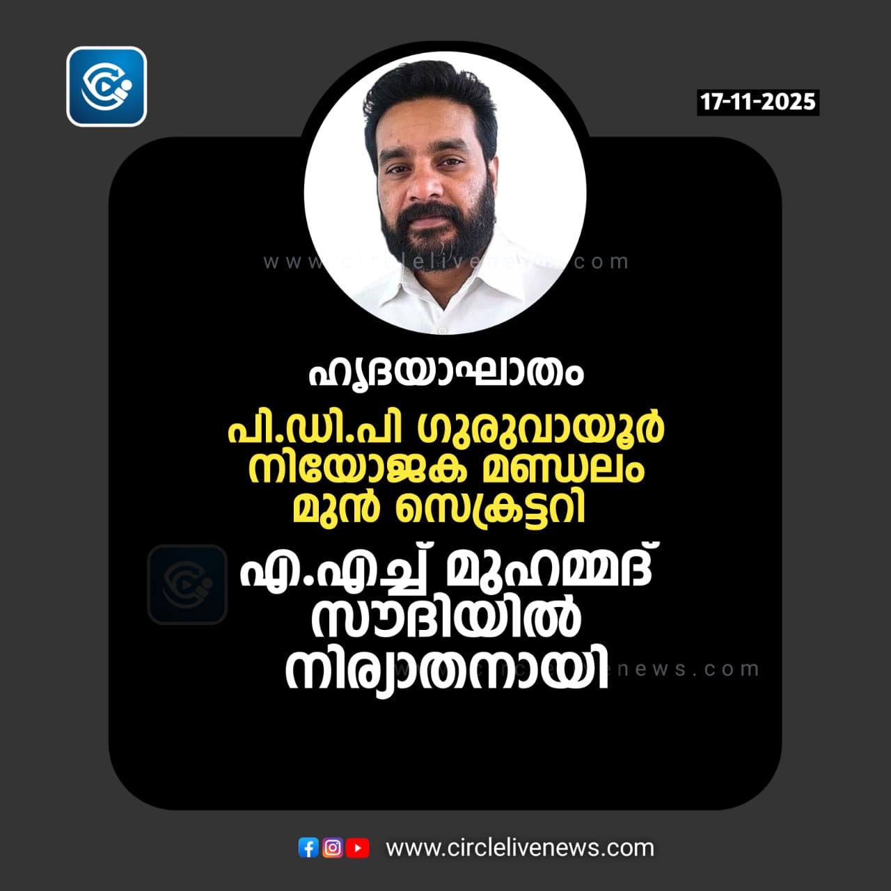 ഹൃദയാഘാതം; പി.ഡി.പി ഗുരുവായൂർ നിയോജക മണ്ഡലം മുൻ സെക്രട്ടറി എ.എച്ച് മുഹമ്മദ് സൗദിയിൽ നിര്യാതനായി