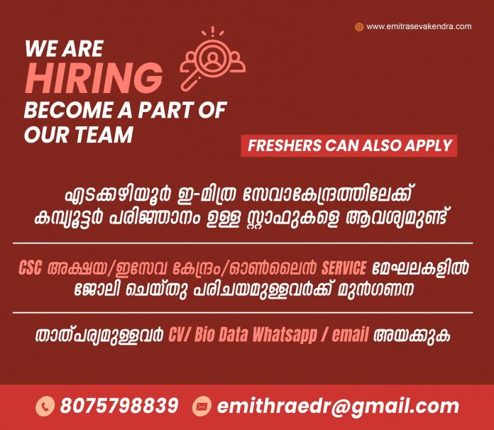 CSC, അക്ഷയ കേന്ദ്രങ്ങളിൽ പ്രവർത്തിച്ച് പരിജയമുള്ളവർക്ക് മുഗണന
