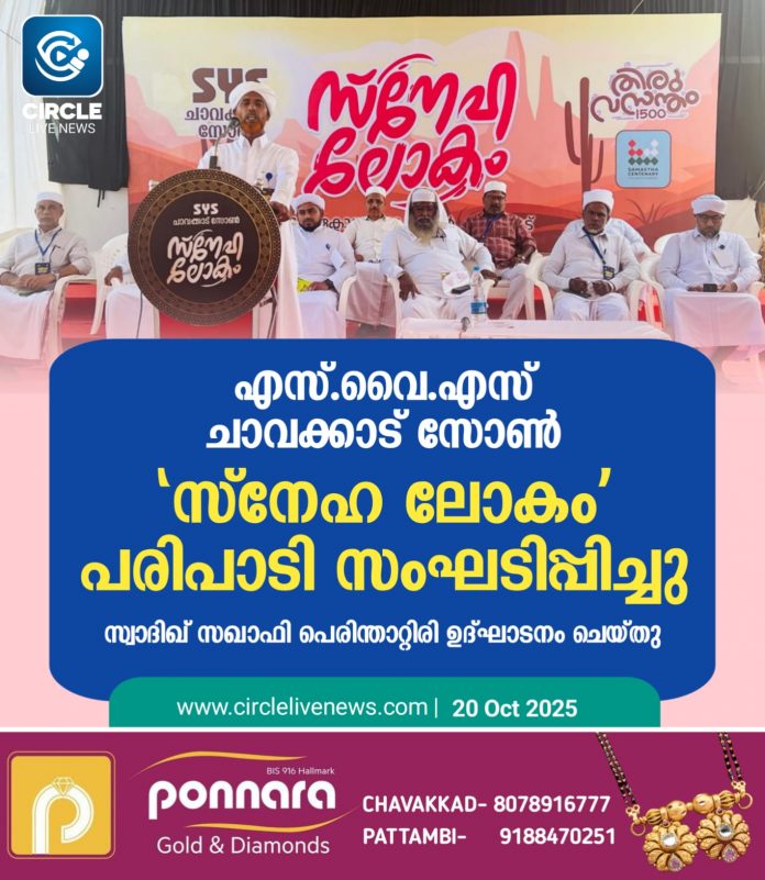 ചാവക്കാട്: വർഗീയ ധ്രുവീകരണമല്ല, മനുഷ്യരെ ചേർത്തുനിർത്തുന്ന സഹിഷ്ണുതയാണ് ഇസ്ലാമെന്ന് എസ്.വൈ.എസ് സംസ്ഥാന സെക്രട്ടറി സ്വാദിഖ് സഖാഫി പെരിന്താറ്റിരി പറഞ്ഞു. എസ്.വൈ.എസ് ചാവക്കാട് സോൺ സംഘടിപ്പിച്ച ‘സ്നേഹ ലോകം’ പരിപാടിയിൽ സംസാരിക്കുകയായിരുന്നു അദ്ദേഹം. മതം മനുഷ്യരെ തമ്മിൽ വൈകാരികമായി അകറ്റി നിർത്തുകയോ, വേർതിരിവുകൾ സൃഷ്ടിക്കുകയോ, വർഗീയ ധ്രുവീകരണത്തിന് കാരണമാവുകയോ ചെയ്യുന്ന ഒന്നല്ല. മറിച്ച് അത് മനുഷ്യരെ പരസ്പരം ചേർത്തുനിർത്തുകയും, ആവശ്യങ്ങൾ നിറവേറ്റുകയും, എല്ലാവരെയും ഉൾക്കൊള്ളുന്ന വിശാലമായ മാനവികതയുടെ സന്ദേശം നൽകുകയും ചെയ്യുന്ന ദർശനമാണെന്ന് അദ്ദേഹം പറഞ്ഞു. സോൺ പ്രസിഡന്റ് ബഷീർ സുഹരി അദ്ധ്യക്ഷത വഹിച്ചു. സ്വഗത സംഘ ചെയർമാൻ ആർ.വി.എം ബഷീർ മൗലവി പതാക ഉയർത്തി. മധ്യമ നിലപാടിന്റെ സൗന്ദര്യം എന്ന വിഷയത്തിൽ വാഹിദ് നിസാമിയും തിരു നബിയുടെ കർമ്മ ഭൂമിക എന്ന വിഷയത്തിൽ അബ്ദുൽ മജീദ് അരിയല്ലൂരും നബി സ്നേഹത്തിന്റെ മധുരം എന്ന വിഷയത്തിൽ സിറാജ്ജുദ്ധീൻ സഖാഫി കൈപ്പമംഗലവും ഉസ്വത്തുൽ ഹസന എന്ന വിഷയത്തിൽ സിദ്ധീഖ് സഖാഫി ഒറ്റപ്പാലവും സംസാരിച്ചു. പൂർണതയുടെ മനുഷ്യ കാവ്യം എന്ന വിഷയത്തിൽ സി കെ എം ഫാറൂഖ്, ജാഫർ ചേലക്കര, പ്രസാദ് കാക്കശ്ശേരി സെമിനാർ നടത്തി. പി എസ് കെ മൊയ്ദു ബാഖവി, സയ്യിദ് കമറുദ്ധീൻ തങ്ങൾ, സയ്യിദ് കോയ തങ്ങൾ വട്ടേക്കാട്, സയ്യിദ് ഹുസൈൻ തങ്ങൾ, സയ്യിദ് താസീൻ തങ്ങൾ, ഇസ്ഹാഖ് ഫൈസി, ബഷീർ അശ്റഫി, ഹുസൈൻ ഹാജി പെരിങ്ങാട്, നിസാർ മേച്ചേരി, യുസുഫ് പൂവത്തൂർ എന്നിവർ പങ്കെടുത്തു.