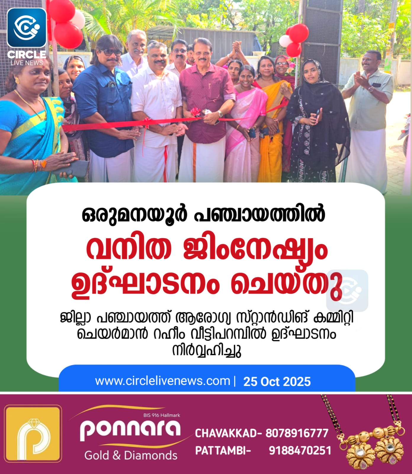 ഒരുമനയൂർ: ഒരുമനയൂർ ഗ്രാമപഞ്ചായത്തിൽ വനിത ജിംനേഷ്യം ഉദ്ഘാടനം ചെയ്തു. ജില്ലാ പഞ്ചായത്ത് ആരോഗ്യ സ്റ്റാൻഡിങ് കമ്മിറ്റിചെയർ പേഴ്സൺ റഹീം വീട്ടിപറമ്പിൽ ഉദ്ഘാടനം നിർവഹിച്ചു. ജില്ലാ പഞ്ചായത്ത് മെമ്പർ അഡ്വ. വി.എം മുഹമ്മദ് ഗസ്സാലി മുഖ്യാതിഥിയായി. ഒരുമനയൂർ ഗ്രാമപഞ്ചായത്ത് പ്രസിഡണ്ട് വിജിത സന്തോഷ് അധ്യക്ഷത വഹിച്ചു. സ്റ്റാൻഡ് കമ്മിറ്റി ചെയർപേഴ്സൺ മാരായ കെ.എച്ച് കയ്യുമ്മു ടീച്ചർ, കെ.വി രവീന്ദ്രൻ, ഫിലോമിന ടീച്ചർ, ബ്ലോക്ക് മെമ്പർ ഷൈനി ഷാജി, കെ ആഷിത, മെമ്പർമാരായ ഹസീന അൻവർ, നെഷറ മുഹമ്മദ്, സിന്ധു അശോകൻ, ആരിഫ ജുഫൈർ, കെ.ജെ ചാക്കോ, സി.ഡി.എസ് ചെയർപേഴ്സൺ സുലൈഖ കാദർ, ആസൂത്രണ സമിതി ഉപാധ്യക്ഷൻ ജോഷി ഫ്രാൻസിസ്, അസിസ്റ്റന്റ് എൻജിനീയർ എസ്.ആർ ദീപക് എന്നിവർ സംസാരിച്ചു. വൈസ് പ്രസിഡണ്ട് കെ.വി കബീർ സ്വാഗതവും സെക്രട്ടറി ഷിപുദാസ് നന്ദിയും പറഞ്ഞു.