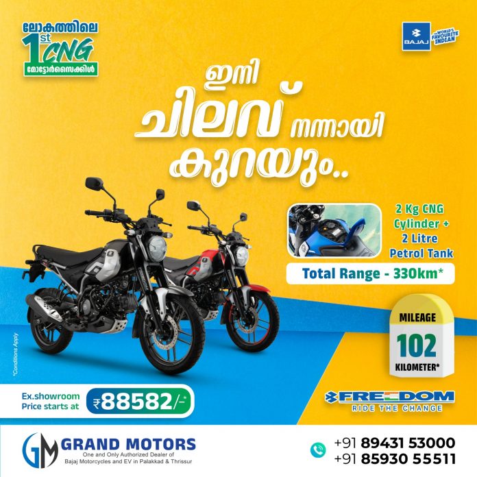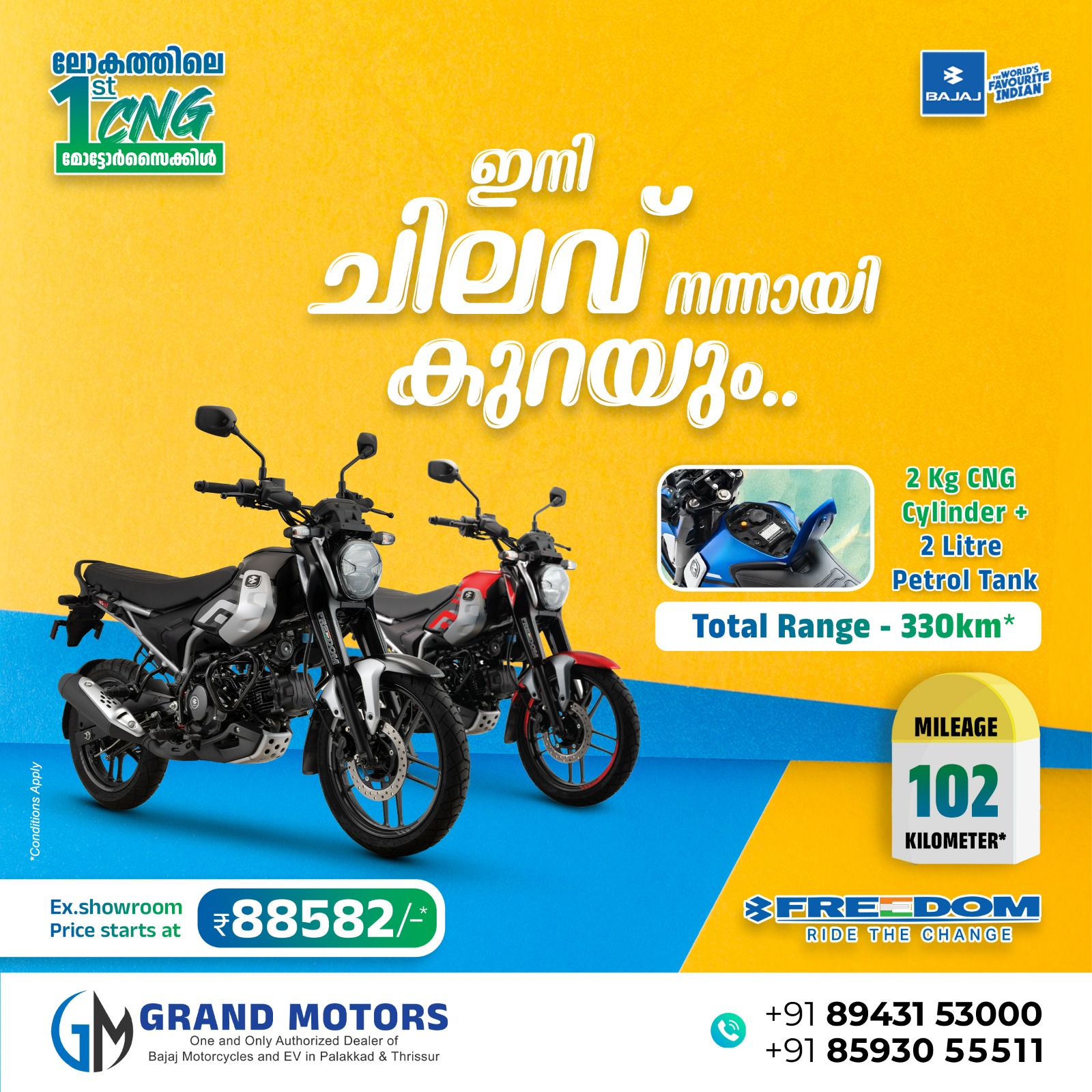 ⦿ പെട്രോളിലും സിഎൻജിയിലും വാഹനം ഉപയോഗിക്കാം.