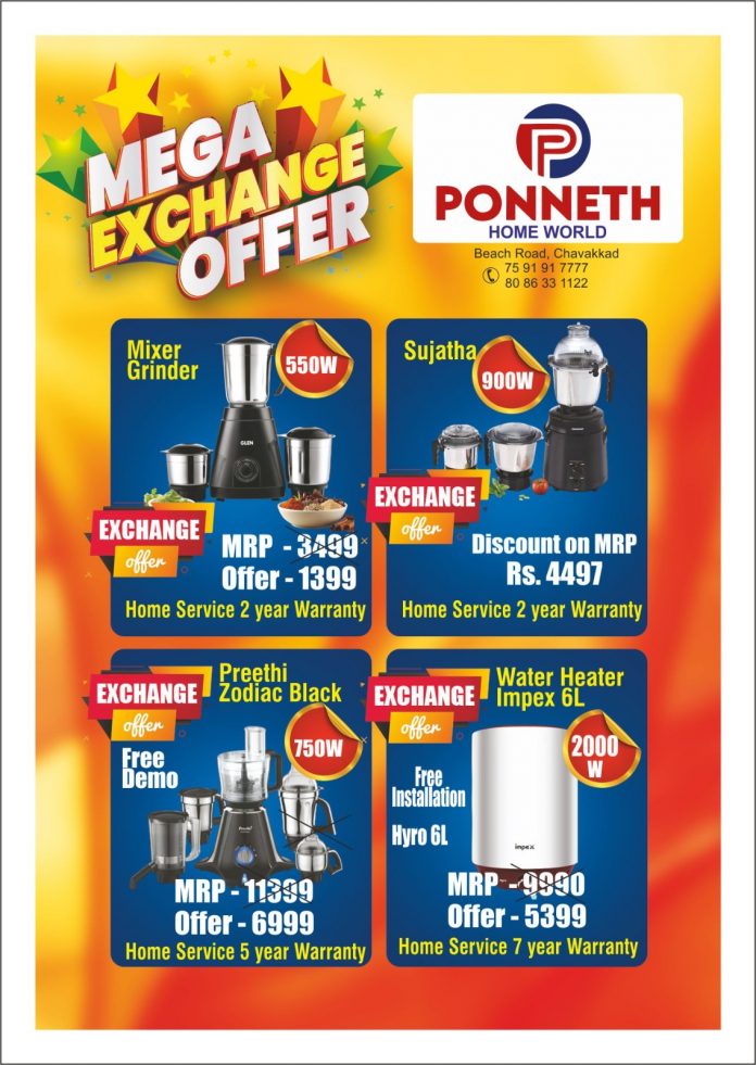പൊന്നേത്തിൽ മെഗാ എക്സ്ചേഞ്ച് ഓഫറിലൂടെ ബ്രാൻ്റഡ് ഉൽപ്പന്നങ്ങൾ വാങ്ങാൻ ഇനി പൈസ വേണ്ടേ വേണ്ട !