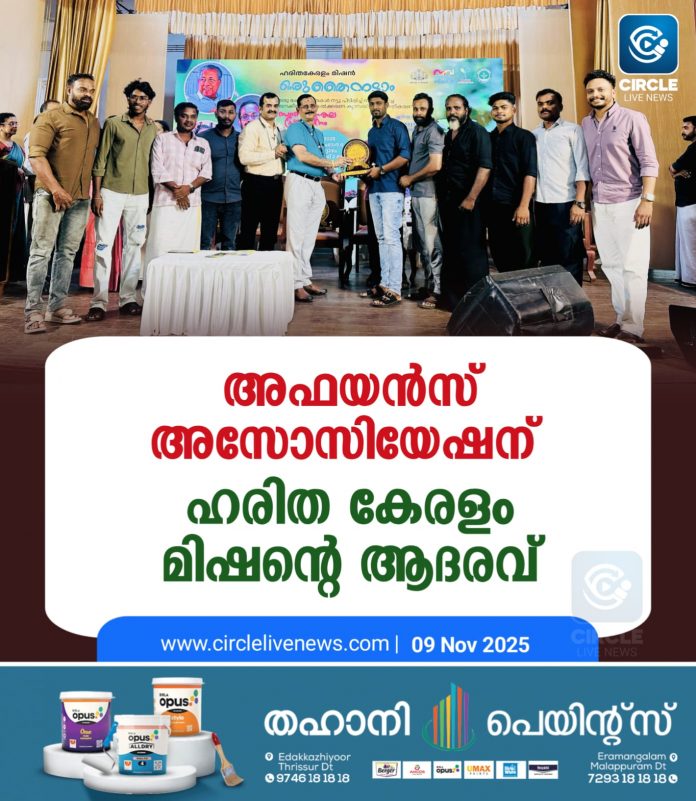 അഫയൻസ് അസോസിയേഷന് ഹരിത കേരളം മിഷന്റെ ആദരവ്