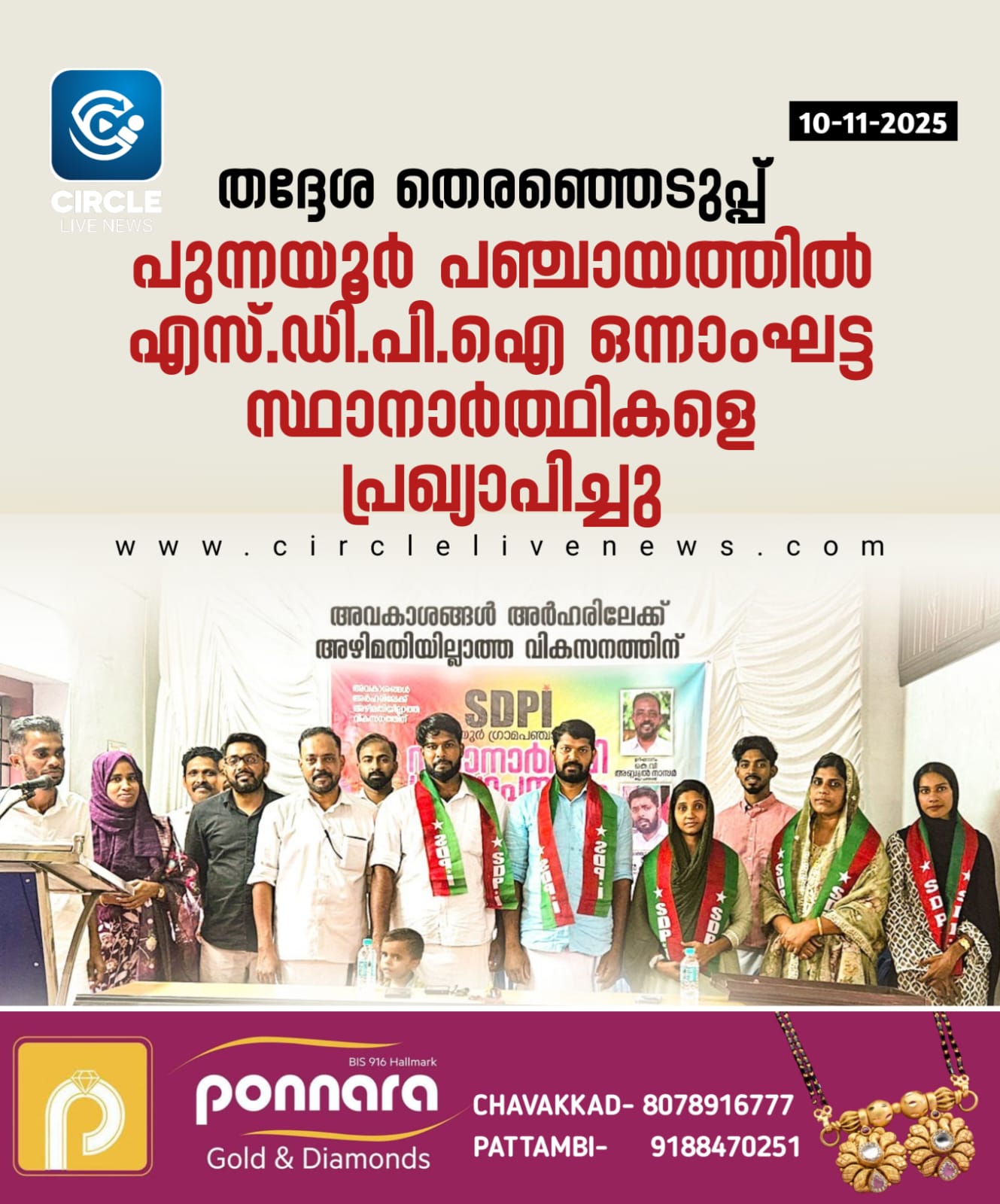 പുന്നയൂർ: തദ്ദേശ തെരഞ്ഞെടുപ്പിൽ പുന്നയൂർ പഞ്ചായത്തിൽ മത്സരിക്കുന്ന സ്ഥാനാർത്ഥികളുടെ ഒന്നാംഘട്ട പട്ടിക പുറത്തിറക്കി എസ്.ഡി.പി.ഐ. വാർഡ് 12 – ടി എം അക്ബർ, വാർഡ് 15 – അഷ്കർ ഖാദിരിയ്യ, വാർഡ് 14 – ഷാഹിദ ഷാജഹാൻ, വാർഡ് 17 – ഫർഷിദ അജ്മൽ, വാർഡ് 20- ഫനീഷ ബാദുഷ എന്നിവരാണ് സ്ഥാനാർത്ഥികൾ. എടക്കഴിയൂർ വ്യാപാരി ഭവനിൽ നടന്ന പ്രവർത്തക കൺവെൻഷനിലായിരുന്നു സ്ഥാനാർത്ഥി പ്രഖ്യാപനം. എസ്.ഡി.പി.ഐ ജില്ലാ പ്രസിഡന്റ് കെ.വി അബ്ദുൽ നാസർ ഉദ്ഘാടനം ചെയ്തു. പഞ്ചായത്ത് പ്രസിഡന്റ് അഷ്കർ ഖാദിരിയ്യ അദ്ധ്യക്ഷത വഹിച്ചു. മണ്ഡലം പ്രസിഡന്റ് ഡോ. സക്കീർ ഹുസൈൻ സ്ഥാനാർത്ഥി പ്രഖ്യാപനം നടത്തി. ജില്ലാ സെക്രട്ടറി ടി.എം അക്ബർ, വുമൺസ് ഇന്ത്യ മൂവ്മെൻ്റ് മണ്ഡലം പ്രസിഡന്റ് അസ്ലമിയ എന്നിവർ സംസാരിച്ചു. പഞ്ചായത്ത് ജോയിന്റ് സെക്രട്ടറി അഷ്ക്കർ എടക്കഴിയൂർ സ്വാഗതവും ട്രഷറർ ടി.എ മുനീർ നന്ദിയും പറഞ്ഞു.
