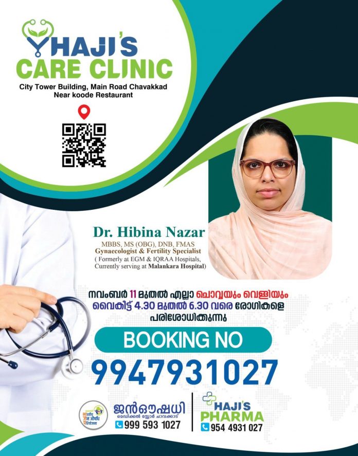 നവംബർ 11 മുതൽ ഹാജിസ് കെയർ ക്ലിനിക്കിൽ രോഗികളെ പരിശോധിക്കുന്നു.