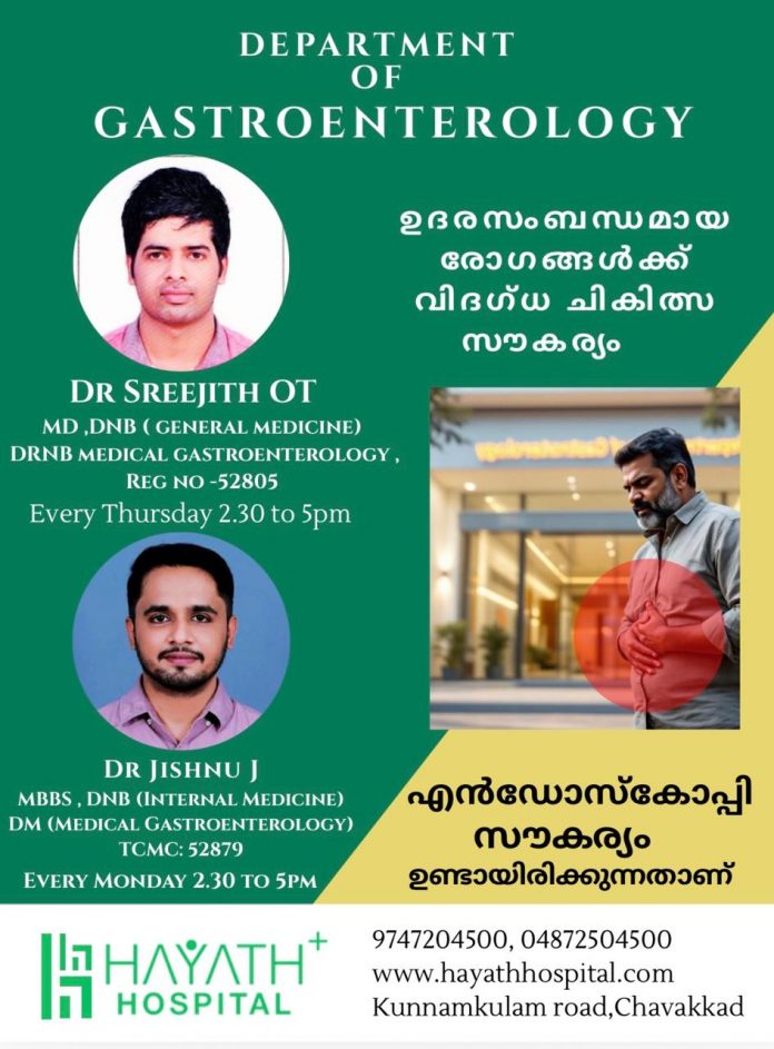 – ഉദര സംബന്ധമായ എല്ലാ രോഗങ്ങൾക്കും വിദഗ്ധ ചികിത്സ ഇവിടെ ലഭ്യമാണ്