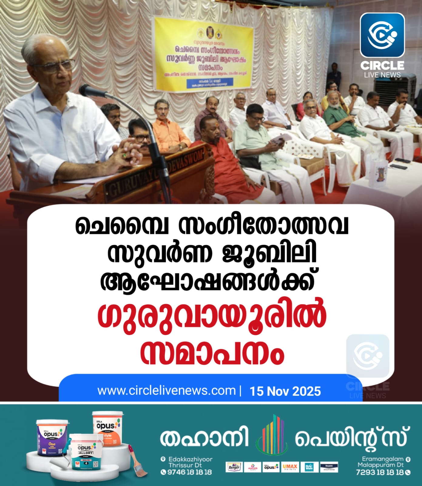 ചെമ്പൈ സംഗീതോത്സവ സുവർണ ജൂബിലി ആഘോഷങ്ങൾക്ക് ഗുരുവായൂരിൽ സമാപനം