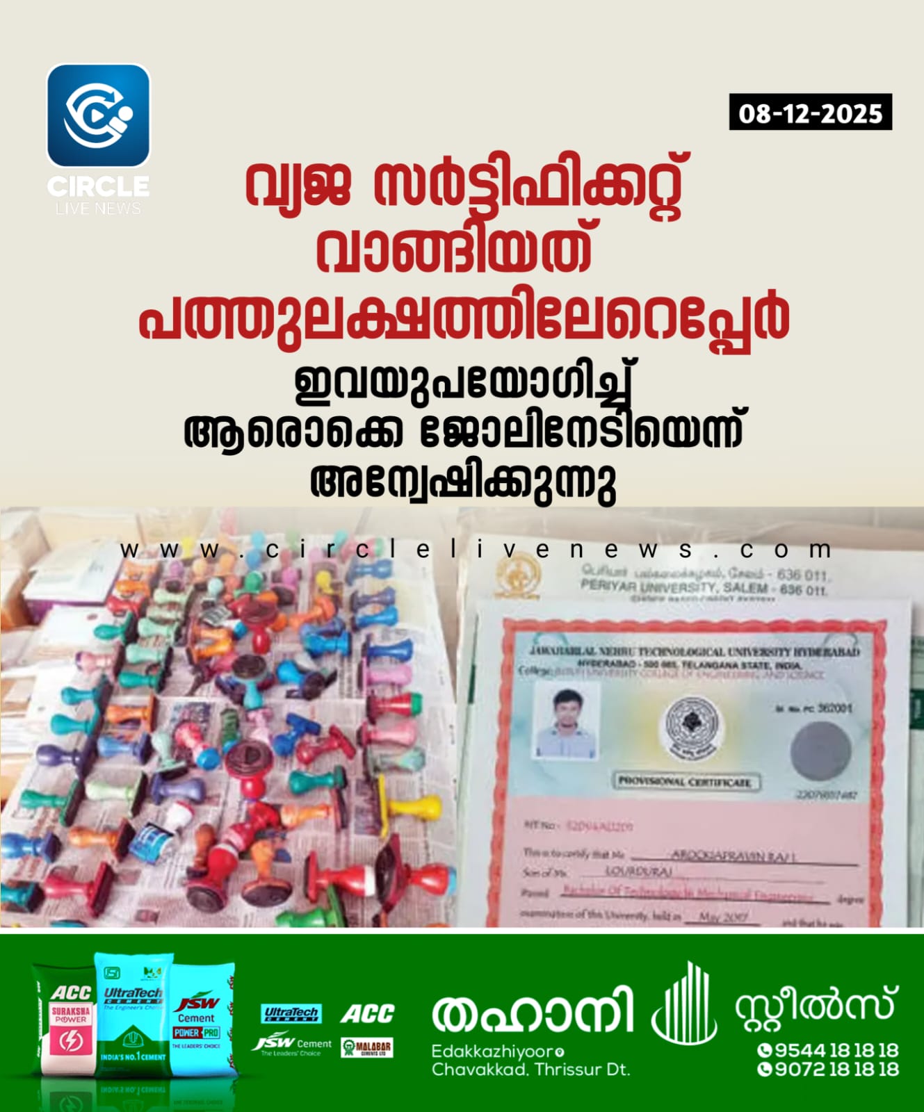 75,000 രൂപമുതല് ഒന്നരലക്ഷം രൂപവരെയാണ് ഒരു സര്ട്ടിഫിക്കറ്റിന് ഈടാക്കിയത്. ധനീഷ് വ്യാജ സര്ട്ടിഫിക്കറ്റ് വില്പ്പനയിലൂടെ കോടികളാണ് സമ്പാദിച്ചത്. വ്യാജ സര്ട്ടിഫിക്കറ്റുപയോഗിച്ച് ആരൊക്കെ ജോലിനേടിയിട്ടുണ്ടെന്നും പോലീസ് അന്വേഷിക്കുന്നുണ്ട്. റിമാന്ഡില് കഴിയുന്ന പ്രതികളെ കസ്റ്റഡിയില് വാങ്ങി ചോദ്യംചെയ്താലേ കൂടുതല്പേര്ക്ക് പങ്കുണ്ടോ തുടങ്ങിയ കാര്യങ്ങള് വ്യക്തമാകൂവെന്നും തിരഞ്ഞെടുപ്പിന്റെ തിരക്കിലായതിനാല് അതുകഴിഞ്ഞേ കസ്റ്റഡിയില് വാങ്ങൂവെന്നും ഇന്സ്പെക്ടര് എസ്. അഷ്റഫ് പറഞ്ഞു.