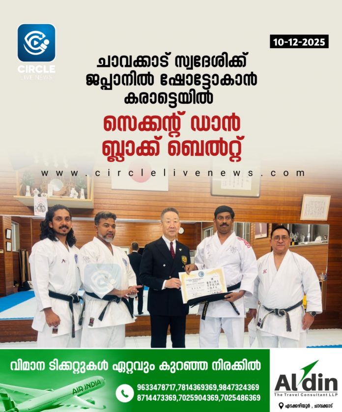 ചാവക്കാട് സ്വദേശിക്ക് ജപ്പാനിൽ ഷോട്ടോകാൻ കരാട്ടെയിൽ സെക്കൻ്റ് ഡാൻ ബ്ലാക്ക് ബെൽറ്റ്