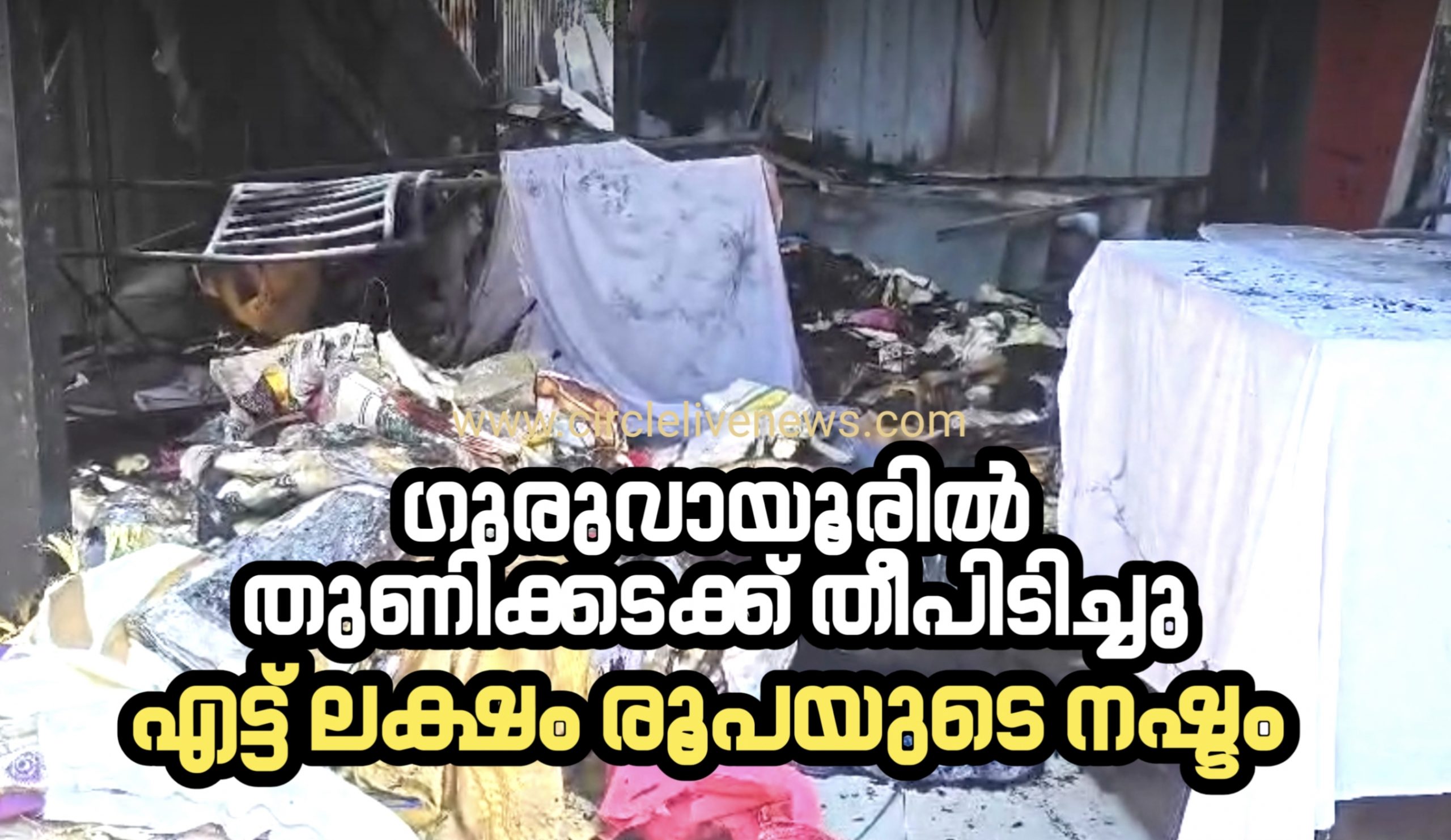 ഗുരുവായൂരിൽ തുണിക്കടക്ക് തീപിടിച്ചു; എട്ടു ലക്ഷം രൂപയുടെ നഷ്ടം