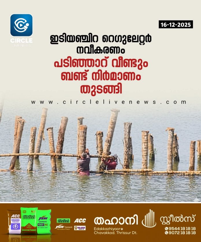 മുല്ലശ്ശേരി : ഇടിയഞ്ചിറ റെഗുലേറ്ററിന്റെ നവീകരണത്തിനായി പടിഞ്ഞാറ് ബണ്ടിന്റെ നിർമാണം തുടങ്ങി. ബണ്ട് ബലപ്പെടുത്തുന്നതിനായി തെങ്ങിൻ തടികൾ കനാലിൽ ഉറപ്പിക്കുന്നത് പൂർത്തിയായി. കഴിഞ്ഞവർഷമാണ് റെഗുലേറ്ററിന്റെ പടിഞ്ഞാറ് ബണ്ട് നിർമാണം ആരംഭിച്ചത്. മഴയിൽ ശക്തമായ നീരൊഴുക്കിനെ തുടർന്ന് ബണ്ട് പൊട്ടി ലക്ഷങ്ങളുടെ നാശനഷ്ടം സംഭവിച്ചു. തുടർന്ന് റെഗുലേറ്ററിന്റെ അടിഭാഗത്തെ നിർമാണ പ്രവർത്തനവും തടസ്സപ്പെട്ടിരുന്നു. ഇവ പൂർത്തിയാക്കാൻ വേണ്ടിയാണ് പടിഞ്ഞാറ് ഭാഗത്ത് വീണ്ടും ബണ്ട് നിർമിക്കുന്നത്. നിർമാണം പൂർത്തിയായാൽ റെഗുലേറ്ററിന്റെ അടിഭാഗത്തെ വെള്ളം വറ്റിച്ച് മുടങ്ങിപ്പോയ ഷട്ടർ ഉൾപ്പെടെ പുനഃസ്ഥാപിക്കുന്നതിനുള്ള പ്രവർത്തനങ്ങൾ ആരംഭിക്കും.