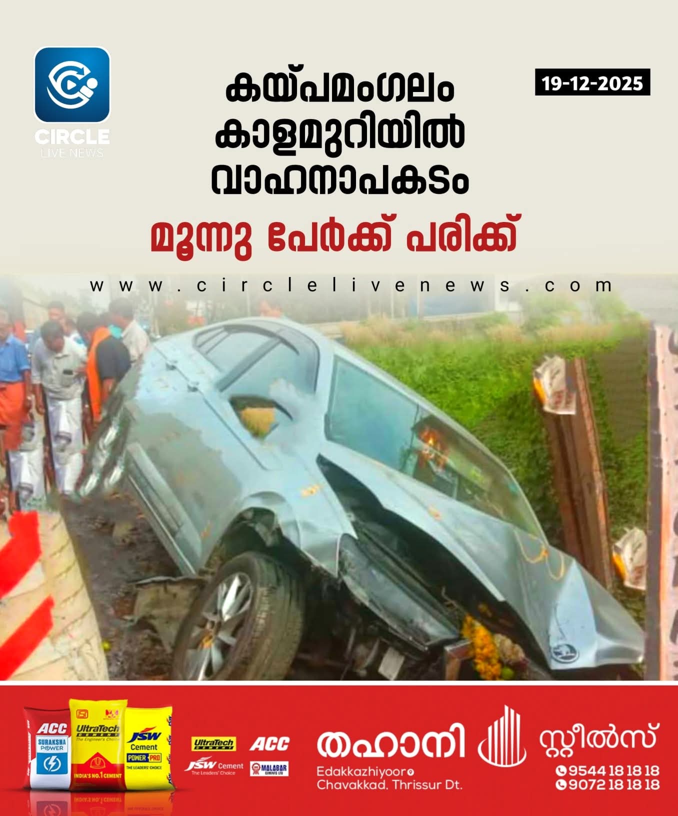 കയ്പമംഗലം: കാളമുറിയിൽ വാഹനാപകടം. മൂന്നു പേർക്ക് പരിക്ക്. ബൈക്ക് യാത്രക്കാരായ കയ്പമംഗലം കൂരിക്കുഴി പുതിയവീട്ടിൽ മുഹമ്മദ് സലീം, ഭാര്യ സീനത്ത്, വലപ്പാട് സ്വദേശി മുഹമ്മദ് സാബിത്ത് എന്നിവർക്കാണ് പരിക്കേറ്റത്. ഇവരെ കൊടുങ്ങല്ലൂർ എ. ആർ ആശുപത്രിയിൽ പ്രവേശിപ്പിച്ചു. ഇന്ന് രാവിലെ ഒൻപതരയോടെയായിരുന്നു അപകടം തെലങ്കാനയിൽ നിന്നുള്ള അയ്യപ്പഭക്തരുടെ കാറും മറ്റ് രണ്ട് ബൈക്കുകളുമാണ് അപകടത്തിൽപ്പെട്ടത്. കാറിന് മുന്നിൽ പോയിരുന്ന ബൈക്കുകൾ കൂട്ടിയിടിച്ചപ്പോൾ നിയന്ത്രിച്ചു നിർത്താൻ ശ്രമിക്കുന്നതിനിടെ അയ്യപ്പഭക്തരുടെ കാർ ബൈക്കിലിടിക്കുകയും കാനയിലേക്ക് മറിയുകയായിരുന്നു. കാറിൻ്റെ മുൻഭാഗം തകർന്നിട്ടുണ്ട്. കാറിലുണ്ടായിരുന്ന 4 പേരും സുരക്ഷിതരാണ്.