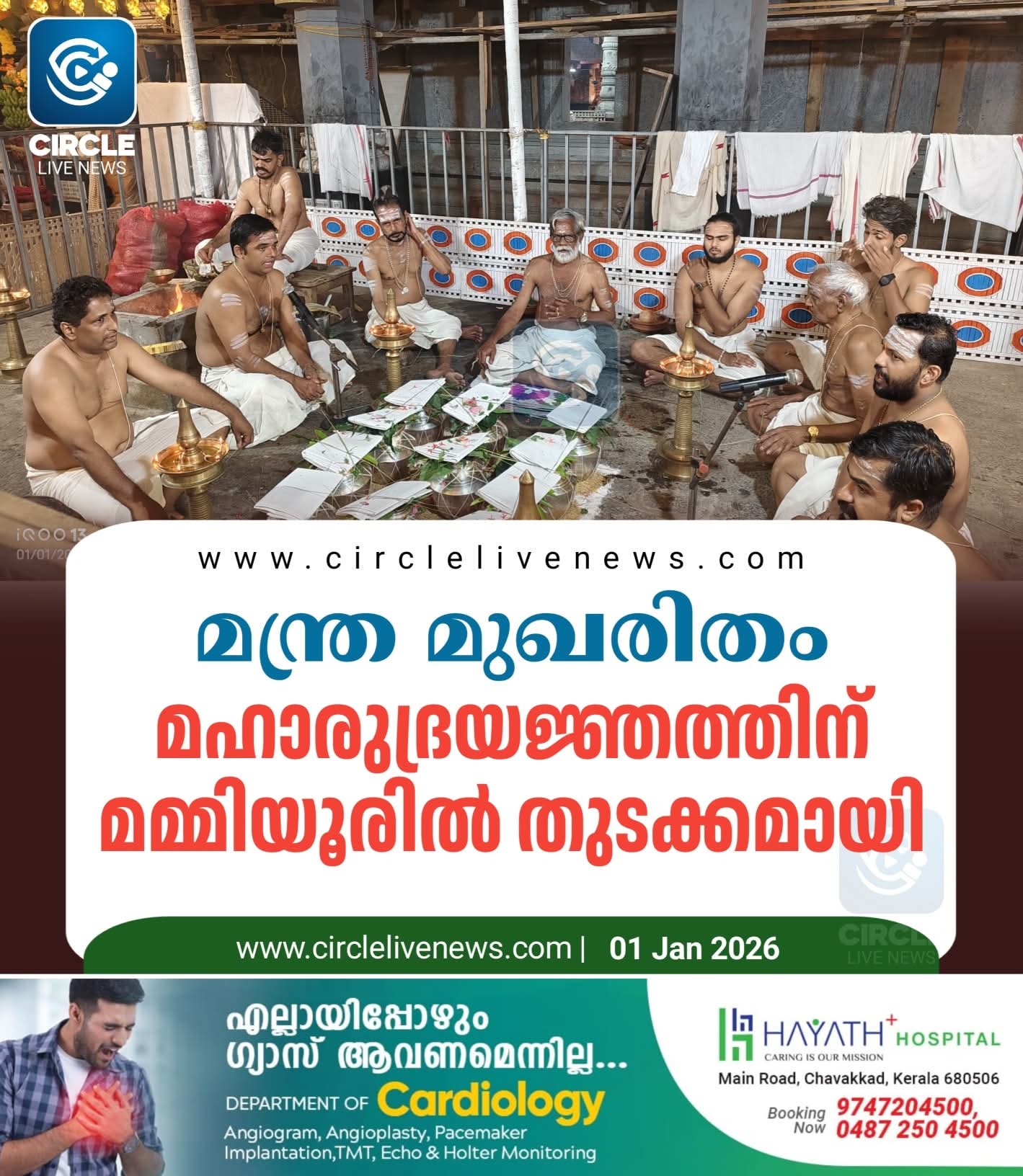 ഗുരുവായൂർ: മന്ത്ര മുഖരിതമായ അന്തരീക്ഷത്തിൽ യജ്ഞശാലയിൽ അഗ്നി പകർന്നതോടെ മമ്മിയൂർ ശ്രീ മഹാദേവ ക്ഷേത്രത്തിൽ മഹാരുദ്രയജ്ഞത്തിന് തുടക്കമായി. 11 വെള്ളിക്കലശങ്ങളിൽ നിറച്ച ശ്രേഷ്ഠ ദ്രവ്യങ്ങൾ ശ്രീരുദ്ര മന്ത്രം ജപിച്ച് ചൈതന്യമാക്കിയ ശേഷം ക്ഷേത്രം തന്ത്രി ബ്രഹ്മശ്രീ ചേന്നാസ് കൃഷ്ണൻ നമ്പൂതിരിപ്പാട് ശ്രീ മഹാദേവന് അഭിഷേകം ചെയ്യുന്നത് ദർശിക്കുവാൻ നിരവധി ഭക്തജനങ്ങൾ ക്ഷേത്രത്തിൽ എത്തിച്ചേർന്നു. യജ്ഞശാലയിൽ നടന്ന ശ്രീരുദ്രമന്ത്രജപത്തിന് കേരളത്തിലെ പ്രമുഖ വേദ പണ്ഡിതൻമാർ പങ്കെടുത്തു. നടരാജ മണ്ഡപത്തിലെ സാംസ്കാരിക പരിപടികളുടെ ദീപപ്രോജ്വലനം ക്ഷേത്രം എക്സിക്യൂട്ടീവ് ഓഫീസർ എൻ. ഷാജി നിർവ്വഹിച്ചു. തുടർന്ന് ഗുരുവായൂർ ശരി മാരാരുടെ കേളിയും ‘അതിരുദ്രം’ എന്ന വിഷയത്തിൽ കാഞ്ഞങ്ങാട് രവിന്ദ്രൻ മാസ്റ്റരുടെ ഭക്തി പ്രഭാഷണം, വാര്യർ സമാജം ആതിര വനിത വിംഗ് ഗുരുവായൂരിൻ്റെ ഭജഗോവിന്ദം ഭജൻസ്, ഇരട്ട കേളി, വൈകീട്ട് ചെറുതാഴം ചന്ദ്രൻ, ചിറയ്ക്കൽ നീതിഷ് എന്നിവരുടെ ഇരട്ട തായമ്പകയും ഉണ്ടായി. രാവിലെ നാഗക്കാവിൽ നാഗപ്പാട്ട്, വൈകീട്ട് ബ്രഹ്മശ്രീ പാതിരിക്കുന്നത്ത് കുളപുറത്ത് മനയ്ക്കൽ സദാനന്ദൻ നമ്പൂതിരിപ്പാടിൻ്റെ കാർമ്മികത്വത്തിൽ സർപ്പബലിയും ഉണ്ടായി.