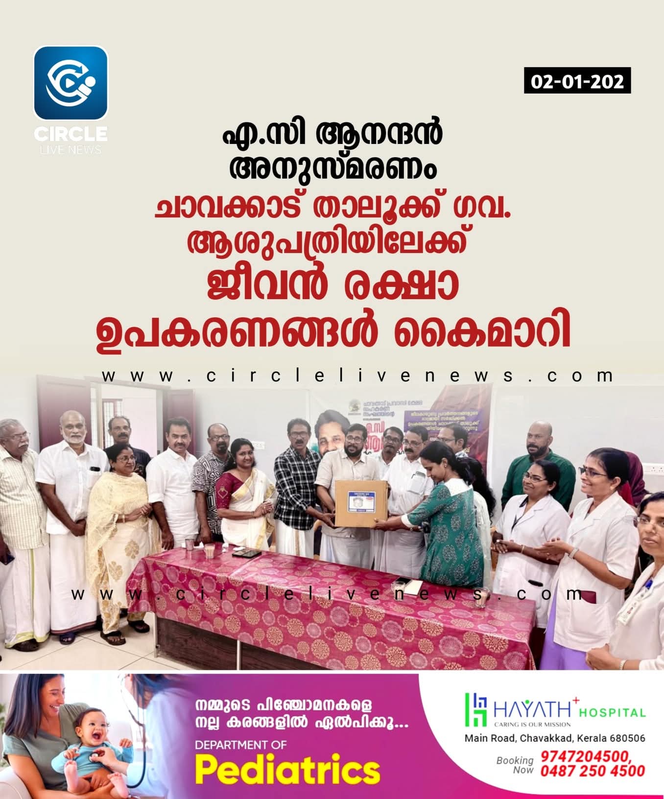 എ.സി ആനന്ദൻ അനുസ്മരണം; ചാവക്കാട് താലൂക്ക് ഗവ. ആശുപത്രിയിലേക്ക് ജീവൻ രക്ഷാ ഉപകരണങ്ങൾ കൈമാറി