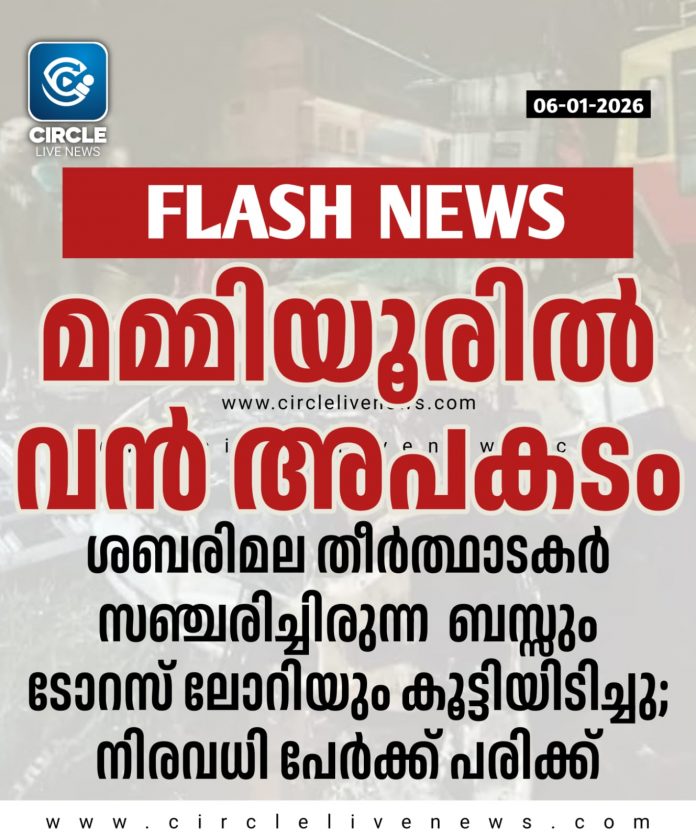 ഗുരുവായൂർ: മമ്മിയൂരിൽ മിനി ബസ്സും ടോറസ് ലോറിയും കൂട്ടിയിടിച്ച് അപകടം. നിരവധി പേർക്ക് പരിക്ക്. ഇന്ന് പുലർച്ചെ 1.45 ഓടെയായിരുന്നു അപകടം. പരിക്കേറ്റവരെ ചാവക്കാട് ഹയാത്ത് ആശുപത്രിയിൽ പ്രവേശിപ്പിച്ചു.