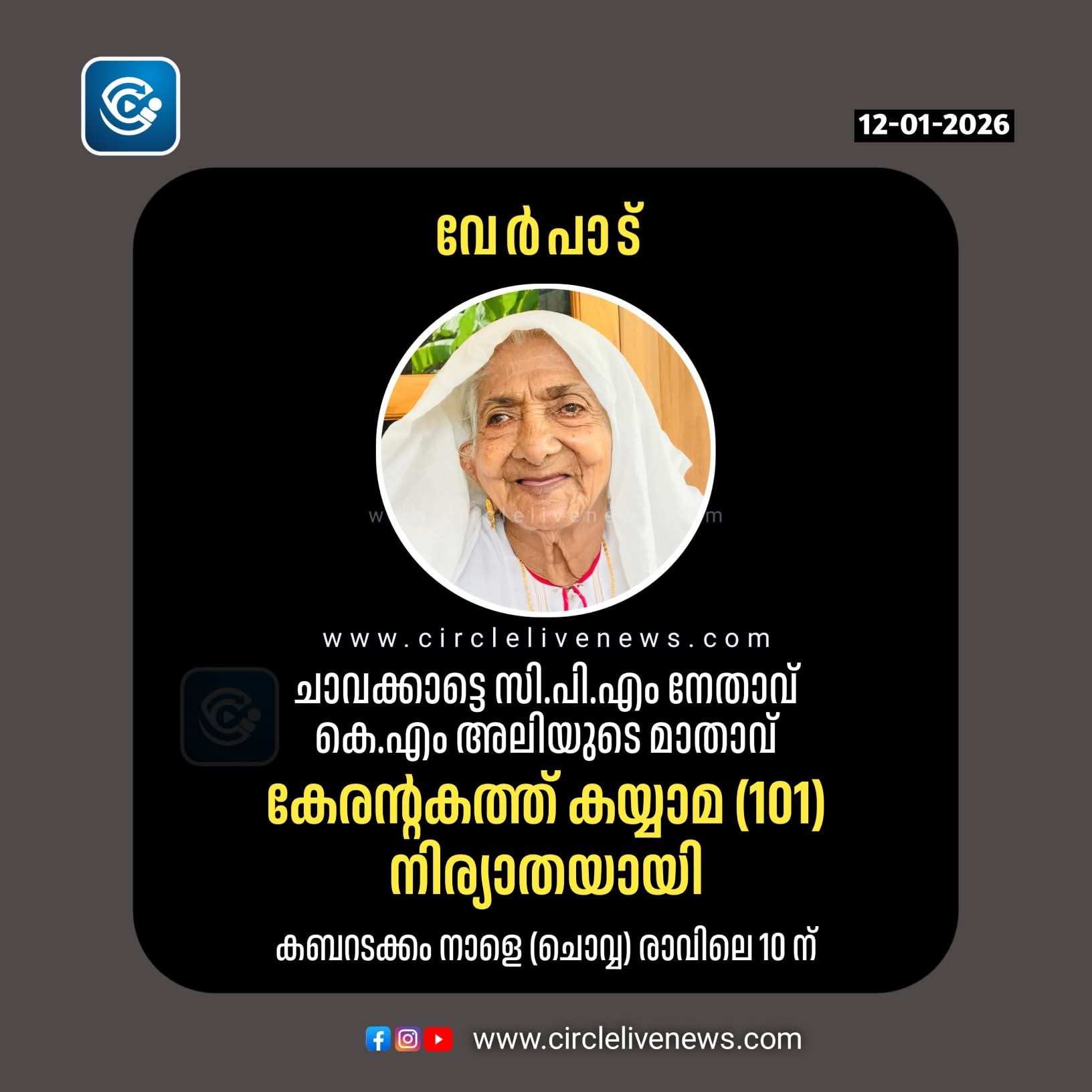 ചാവക്കാട്ടെ സി.പി.എം നേതാവ് കെ.എം അലിയുടെ മാതാവ് കേരൻ്റകത്ത് കയ്യാമ (101) നിര്യാതയായി