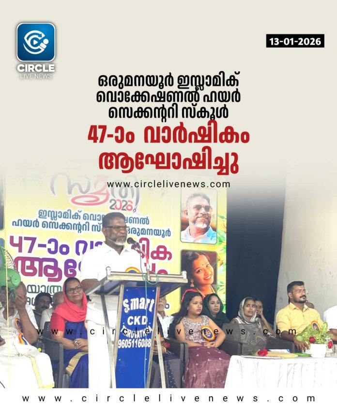 ഒരുമനയൂർ: ഒരുമനയൂർ ഇസ്ലാമിക് വൊക്കേഷണൽ ഹയർ സെക്കന്ററി സ്കൂളിന്റെ 47-ാം വാർഷികവും യാത്രയയപ്പും അധ്യാപക രക്ഷാകർതൃ സംഗമവും സംഘടിപ്പിച്ചു. ഒരുമനയൂർ പഞ്ചായത്ത് പ്രസിഡന്റ് പി.എം താഹിർ ഉദ്ഘാടനം ചെയ്തു. പി.ടി.എ പ്രസിഡന്റ് നിഷാദ് മാളിയേക്കൽ അധ്യക്ഷത വഹിച്ചു. 28 വർഷത്തെ സേവനത്തിന് ശേഷം വി.എച്ച്.എസ്.എസിൽ നിന്നും വിരമിക്കുന്ന അധ്യാപകരായ സി.കെ മുംതാസ്, എം.എസ് സീമ എന്നിവരെ ആദരിച്ചു. അനന്യ നായർ വിശിഷ്ടാതിഥിയായി. മാനേജർ പി.കെ ജമാലുദ്ധീൻ മുഖ്യ പ്രഭാഷണം നടത്തി. പ്രിൻസിപ്പൽ ടിഷ സുരേഷ് സ്വാഗതം പറഞ്ഞു. സ്ക്കൂൾ സെക്രട്ടറി കൂടിയായ ഗുരുവായൂർ നഗരസഭ കൗൺസിലർ നൗഷാദ് അഹമ്മുവിനെ ആദരിച്ചു. ജില്ല പഞ്ചായത്ത് മെമ്പർ ശ്രീഷ്മ ബാബുരാജ്, ബ്ലോക്ക് മെമ്പർ കെ.ജെ ചാക്കോ, വാർഡ് മെമ്പർ ആരിഫ ജൂഫെയർ, ഒ.എം.ഇ.സി സെക്രട്ടറി വഹാബ്, ട്രഷറർ മൻസൂർ, അബ്ദുള്ള മോൻ, അൻവർ, ഹമീദ് ഹാജി, ബാബു, പദ്മജ, ദിൽജിത്, ദിൽഷ, സതിഷ് കുമാർ, മുംതാസ് അസി എന്നിവർ സംസാരിച്ചു.