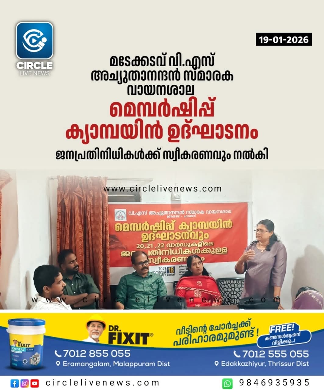 മടേക്കടവ് വി.എസ് അച്യുതാനന്ദൻ സ്മാരക വായനശാല മെമ്പർഷിപ്പ് ക്യാമ്പയിൻ ഉദ്ഘാടനവും ജനപ്രതിനിധികൾക്ക് സ്വീകരണവും