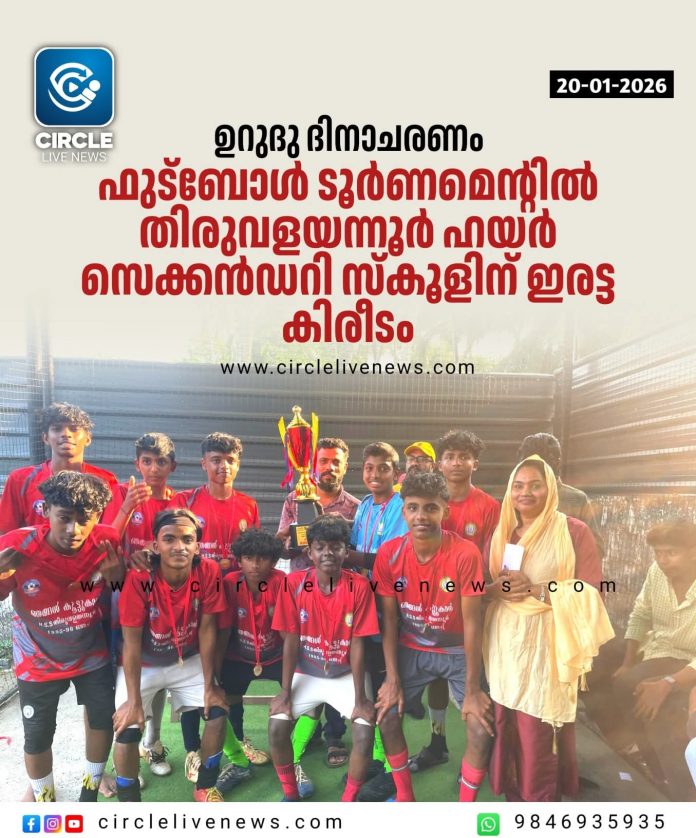 ഒരുമനയൂർ: ഉർദു ദിനാചരണത്തിനോടനുബന്ധിച്ച് ചാവക്കാട്, മുല്ലശ്ശേരി ഉപജില്ലാ ഉർദു അധ്യാപകർ സംഘടിപ്പിച്ച അല്ലാമ ഇഖ്ബാൽ സ്മാരക ഫുട്ബോൾ ടൂർണമെന്റ് സമാപിച്ചു. ഒരുമനയൂർ മാങ്ങോട്ട് പടി ഇൻ സ്പോർട്സ് അറീന ടർഫിൽ നടന്ന ടൂർണമെന്റിൽ 15ലധികം സ്കൂൾ ടീമുകൾ പങ്കെടുത്തു. പി.ടി.എ പ്രസിഡണ്ട് ഹനീഫ മാളിയേക്കൽ ഉദ്ഘാടനം ചെയ്തു. ഒരുമനയൂർ എ.യു.പി സ്കൂൾ ഉറദു അധ്യാപിക നൗമിഷ ടീച്ചർ സ്വാഗതം പറഞ്ഞു. ഹയർ സെക്കൻഡറി വിഭാഗത്തിലും യു.പി വിഭാഗത്തിലും തിരുവളയന്നൂർ ഹയർ സെക്കൻഡറി സ്കൂളാണ് വിജയികളായത്. തൈക്കാട് അപ്പു മെമ്മോറിയൽ ഹയർ സെക്കൻഡറി സ്കൂൾ, എടക്കഴിയൂർ ആർ.പി.എം.എം സ്കൂൾ യഥാക്രമം എണ്ണം സ്ഥാനം നേടി. മികച്ച കളിക്കാരായി റിസ്വാൻ, മുഹമ്മദ് ഹൈസാം എന്നിവരെയും മികച്ച ഗോൾകീപ്പർമാറായി നിഹാൽ, മുഹമ്മദ് അസ്ലം എന്നിവരെയും തിരഞ്ഞെടുത്തു.