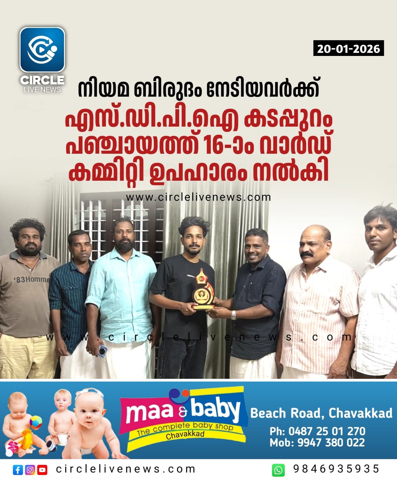 കടപ്പുറം: നിയമ ബിരുദം നേടിയവർക്ക് എസ്.ഡി.പി.ഐ കടപ്പുറം പഞ്ചായത്ത് 16-ാം വാർഡ് കമ്മിറ്റി ഉപഹാരം നൽകി. ബി.എ എൽ.എൽ.ബി വിജയിച്ച ഇർഫാൻ, എൽ.എൽ.ബി വിജയിച്ച മുഹമ്മദ് നഈം എന്നിവരെയാണ് ഉപഹാരം നൽകി അനുമോദിച്ചത്. എസ്.ഡി.പി.ഐ ഗുരുവായൂർ മണ്ഡലം ഓർഗനൈസിംഗ് സെക്രട്ടറി ഷെഫീദ് ബ്ലാങ്ങാട്, എസ്.ഡി.പി.ഐ കടപ്പുറം പഞ്ചായത്ത് ട്രഷറർ വി.എ ജാഫർ ഉപഹാരങ്ങൾ കൈമാറി. എസ്.ഡി.പി.ഐ കടപ്പുറം പഞ്ചായത്ത് പ്രസിഡന്റ് കെ.എച്ച് ഷാജഹാൻ അധ്യക്ഷത വഹിച്ചു. പഞ്ചായത്ത് കമ്മിറ്റി അംഗങ്ങളായ എ.ആർ മുനീർ, നിസാർ എന്നിവർ പങ്കെടുത്തു.
