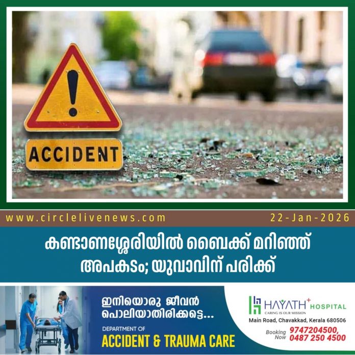 കണ്ടാണശ്ശേരിയിൽ ബൈക്ക് മറിഞ്ഞ് അപകടം; യുവാവിന് പരിക്ക്