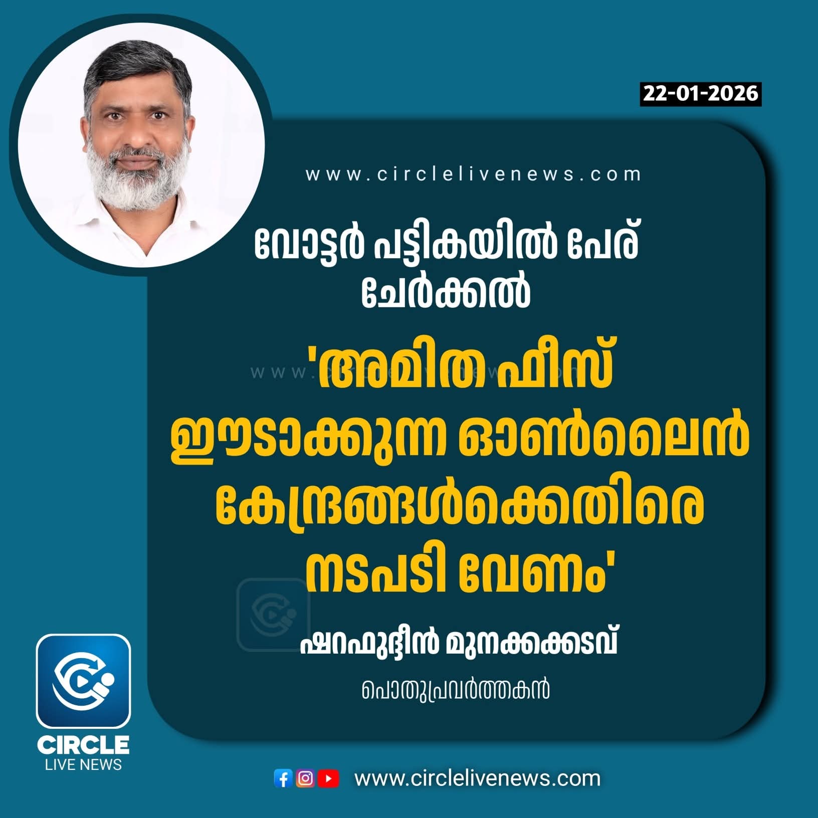 ചാവക്കാട് : വോട്ടർ പട്ടികയിൽ പേര് ചേർക്കുന്നതിന് വൻ തുക ഈടാക്കുന്ന ഓൺലൈൻ കേന്ദ്രങ്ങൾക്കെതിരെ നടപടി വേണമെന്ന പൊതുപ്രവർത്തകൻ ഷറഫുദ്ദീൻ മുനക്കക്കടവ് ആവശ്യപ്പെട്ടു. സർക്കാർ സൗജന്യമായി നൽകുന്ന സേവനങ്ങൾക്ക് യാതൊരു മാനദണ്ഡവുമില്ലാതെയാണ് പലയിടങ്ങളിലും പണം ഈടാക്കുന്നത്. ഒരു വോട്ട് ചേർക്കുന്നതിന് 100 മുതൽ 120 രൂപ വരെ വാങ്ങുന്ന കേന്ദ്രങ്ങളുണ്ട്. സാധാരണക്കാരായ ജനങ്ങളെ ചൂഷണം ചെയ്യുന്ന ഈ രീതി അവസാനിപ്പിക്കാൻ അധികൃതരുടെ അടിയന്തര ഇടപെടൽ ആവശ്യമാണെന്നും വോട്ടർ പട്ടിക പുതുക്കുന്നതുമായി ബന്ധപ്പെട്ട ഓൺലൈൻ സേവനങ്ങൾക്ക് ഏകീകൃതമായ ഫീസ് ഘടന നടപ്പിലാക്കണമെന്നും അദ്ദേഹം ആവശ്യപ്പെട്ടു.
