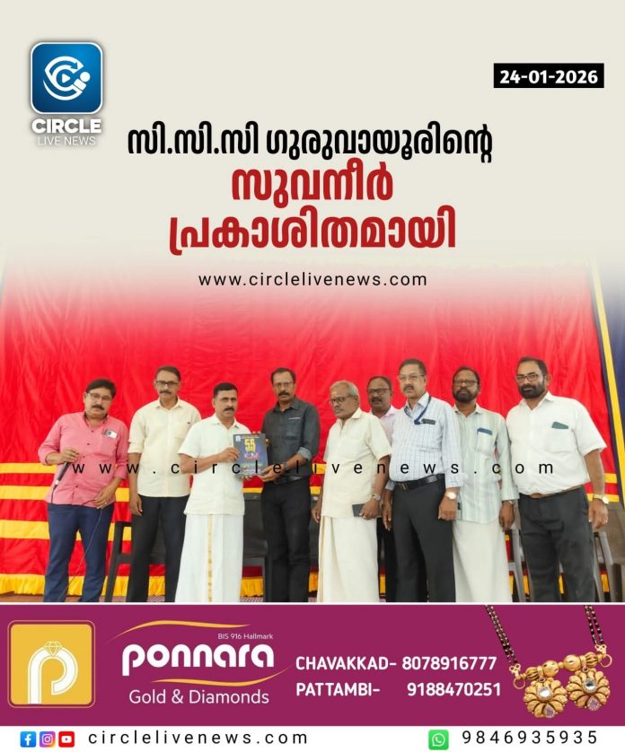 ഗുരുവായൂർ: സി.സി.സി ഗുരുവായൂരിന്റെ സുവനീർ പ്രകാശിതമായി. ഗുരുവായൂർ നഗരസഭ ടൗൺഹാളിൽ വൈസ് ചെയർമാൻ കെ.കെ ജ്യോതിരാജ് ഉദ്ഘാടനം ചെയ്തു. പ്രസിഡന്റ് സി.ഡി ജോൺസൺ അധ്യക്ഷത വഹിച്ചു. മാധ്യമപ്രവർത്തകൻ കെ.വി സുബൈർ സുവനീർ ഏറ്റുവാങ്ങി. മാധ്യമപ്രവർത്തകൻ ലിജിത്ത് തരകൻ, ചന്ദ്രൻ ചങ്കത്ത്, ചീഫ് എഡിറ്റർ ലത്തീഫ് മമ്മിയൂർ, സബ് എഡിറ്റർ പ്രസാദ് പട്ടണത്ത്, എക്സിക്യൂട്ടീവ് വൈസ് പ്രസിഡന്റ് വിദ്യാധരൻ എന്നിവർ സംസാരിച്ചു. തുടർന്ന് കൊല്ലം അയന നാടക വേദിയുടെ ‘ഒറ്റ മുറിയിലെ പെണ്ണ്’ എന്ന നാടകം അരങ്ങേറി.