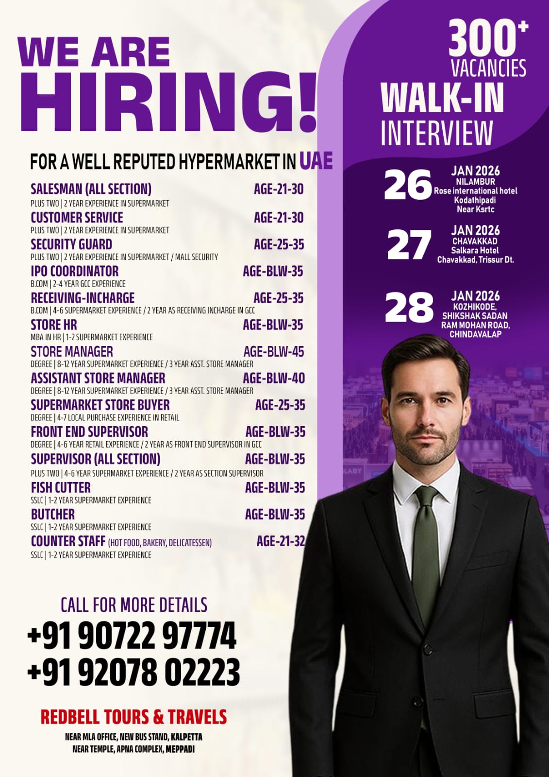 WALK-IN INTERVIEW @CHAVAKKAD & KOZHIKODE.