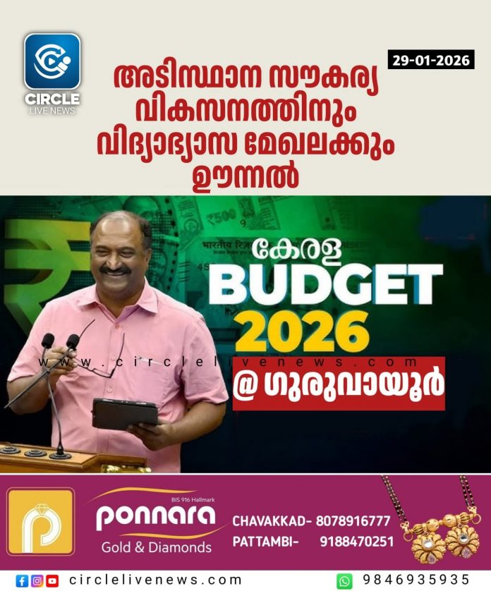 സംസ്ഥാന ബജറ്റ്; ഗുരുവായൂർ മണ്ഡലത്തിൽ അടിസ്ഥാന സൗകര്യ വികസനത്തിനും വിദ്യാഭ്യാസ മേഖലക്കും ഊന്നൽ