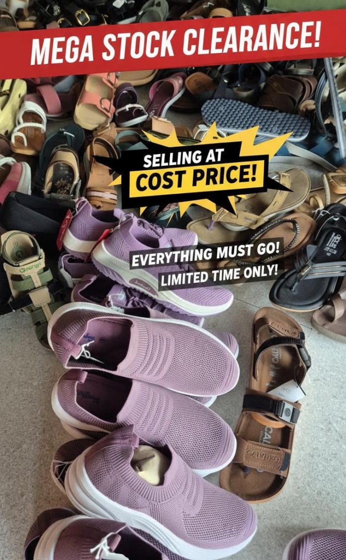 സ്റ്റോക്ക് തീർക്കുന്നതിന്റെ ഭാഗമായി ഞങ്ങളുടെ ഷോപ്പിലെ എല്ലാ പാദരക്ഷകളും വാങ്ങിയ വിലയ്ക്ക് വിറ്റു തീർക്കുന്നു.കുട്ടികൾക്കും മുതിർന്നവർക്കും വേണ്ട ലേറ്റസ്റ്റ് മോഡലുകൾ ഇപ്പോൾ തന്നെ സ്വന്തമാക്കൂ!”