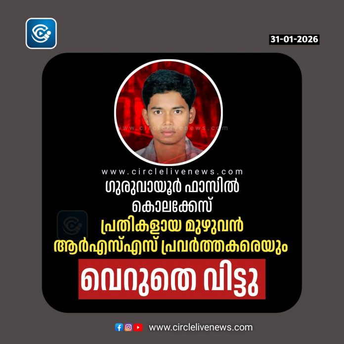 ഗുരുവായൂർ: ബ്രഹ്മകുളത്ത് എസ്.എഫ്.ഐ പ്രവർത്തകൻ ഫാസിൽ കൊലക്കേസിൽ പ്രതികളായ ആർ.എസ്.എസ് പ്രവർത്തകരായ മുഴുവൻ പ്രതികളെയും തൃശ്ശൂർ അഡീഷണൽ സെഷൻസ് കോടതി വെറുതെ വിട്ടു. 15 പ്രതികൾ ഉണ്ടായിരുന്ന കേസിൽ ഒരാളെ 2017 ൽ വെട്ടിക്കൊലപ്പെടുത്തിയിരുന്നു. വടക്കേതരകത്ത് ആനന്ദനേ(23)യായിരുന്നു വെട്ടിക്കൊലപ്പെടുത്തിയത്. ബാക്കി പ്രതികളായ തൈക്കാട് ബ്രഹ്മകുളം ചേറാടി സുമേഷ് (29), ചക്കണ്ട ശിവദാസൻ (24), പുതുമനശേരി ബിനോയ് (31), കോറോട്ട് സുധീഷ് (27), മാടമ്പാറ വിശ്വൻ (28), കൈതക്കാട്ട് വിപിൻദാസ് (26), വിളക്കത്തല ശ്രീകണ്ഠൻ (33), വിളക്കത്തല സുരേഷ് കുമാർ (ശ്രീജിത്ത്, 28), പാണ്ഡാരിക്കൽ കുന്നുമ്മേൽ സനോജ് (26) പട്ടിക്കാട് വിഷ്ണു (സുത്തുമണി, 20), കുരുവള്ളിപ്പറമ്പിൽ പ്രദീപ് (19), മണിയൻതറ നീരജ് (24), എങ്ങടി ശ്രീകുമാർ (20), പുതുമനശേരി ശാന്തീപ് (30) എന്നിവരേയാണ് കുറ്റക്കരല്ലെന്ന് കണ്ട് കോടതി വെറുതെ വിട്ട് കൊണ്ട് ഉത്തരവായത്. സർക്കിൾ ലൈവ് ന്യൂസ് അപ്ഡേറ്റ് . പ്രോസിക്യൂഷൻ സംശയാസ്പദമായി കേസ് തെളിയിക്കുന്നതിൽ പരാജയപ്പെട്ട സഹാചര്യത്തിലാണ് മുഴുവൻ പ്രതികളെയും വെറുതെ വിട്ടുകൊണ്ടുള്ള കോടതി ഉത്തരവ്.’2013 നവംബർ നാലിനായിരുന്നു കേസിനാസ്പദമായ സംഭവം. വീട്ടിലേക്ക് ബൈക്കിൽ വരികയായിരുന്ന ഫാസിലിനെ ആർഎസ്എസ് സംഘം വെട്ടിക്കൊലപ്പെടുത്തുകയായിരുന്നു. പ്രോസിക്യൂഷൻ ഭാഗത്ത് നിന്ന് 4 ദൃസാക്ഷികളുൾപ്പെടെ 38 സാക്ഷികളെ വിസ്തരിക്കുകയും 131 രേഖകൾ ഹാജരാക്കുകയും ചെയ്തെങ്കിലും സംശയാസ്പദമായി കേസ് തെളിയിക്കുവാൻ സാധിക്കാത്ത സാഹചര്യത്തിലാണ് 14 പ്രതികളെയും കോടതി വെറുതെ വിട്ടത്. പ്രതിഭാഗത്തിന് വേണ്ടി അഡ്വ. പി.എസ് ഈശ്വരൻ, അഡ്വ. ടി.സി കൃഷ്ണൻ നാരായണൻ, അഡ്വ. അക്ഷയ് ബാബുരാജ്, അഡ്വ. കെ സജിത്ത് എന്നിവർ ഹാജരായി.