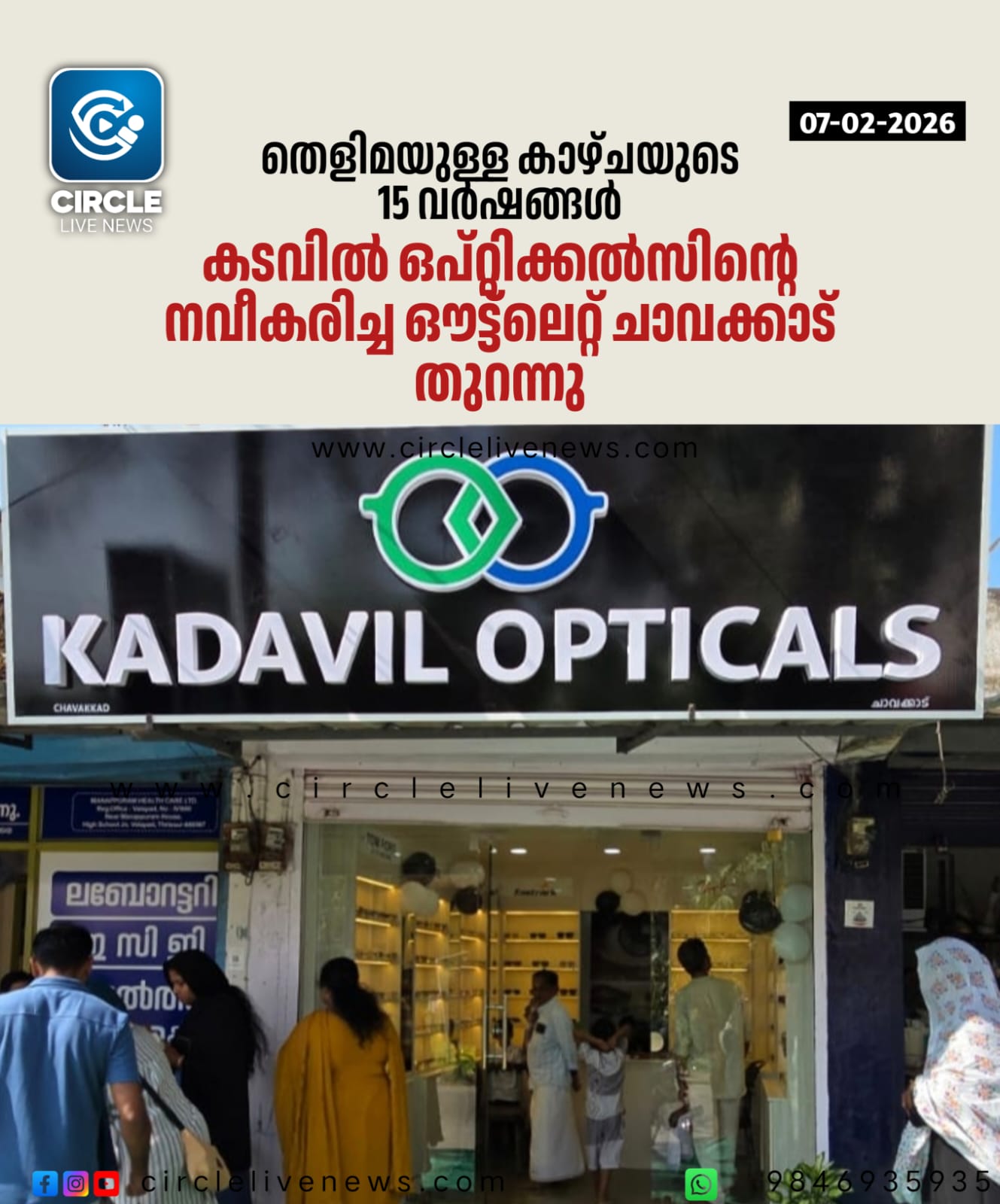 ചാവക്കാട്: 15 വർഷത്തിലേറെക്കാലമായി നേത്ര പരിചരണരംഗത്ത് വിശ്വസ്തതയോടെ പ്രവർത്തിച്ചുവരുന്ന കടവിൽ ഒപ്റ്റിക്കൽസിൻ്റെ ചാവക്കാട് ആശുപത്രി റോഡിലുള്ള നവീകരിച്ച ഔട്ട്ലെറ്റ് ഇന്ന് (ശനി) മുതൽ തുറന്ന് പ്രവർത്തനം ആരംഭിച്ചു. ഉദ്ഘാടനത്തോടനുബന്ധിച്ച് ആകർഷകമായ വിലക്കുറവും സമ്മാനങ്ങളുമാണ് ഇവിടെ ഒരുക്കിയിട്ടുള്ളത്. ഗുണമേന്മയുള്ള കണ്ണടകളും ലെൻസുകളും സാധാരണക്കാർക്ക് വിലക്കുറവിൽ ലഭ്യമാക്കുക എന്ന ലക്ഷ്യത്തോടെയാണ് കടവിൽ ഒപ്ടിക്കൽസ് പ്രവർത്തിക്കുന്നത്. ഇതോടൊപ്പം ഉപഭോക്താക്കൾക്ക് സമ്മാനങ്ങളും ഇവിടെ ഒരുക്കിയിട്ടുണ്ട്. കൂടുതൽ വിവരങ്ങൾക്ക് 9048227795, 8157907795