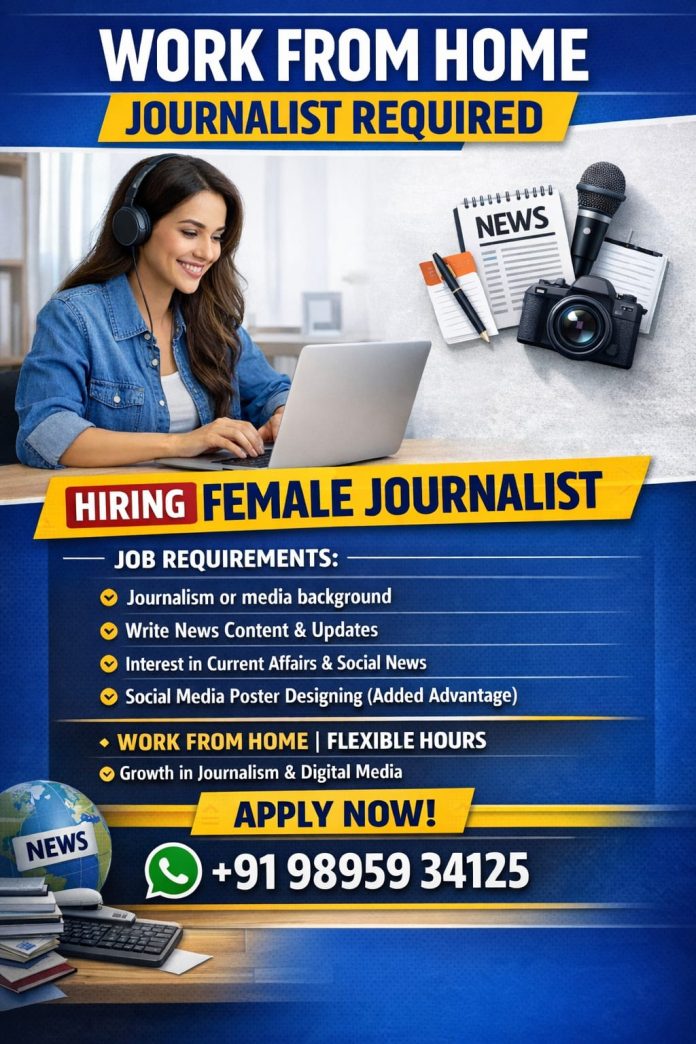 Home Job RequirementsJournalism or media background preferredAbility to write news content & daily news updatesStrong interest in current affairs, social & community newsAdditional advantage: Knowledge of social media poster designingGood communication skillsAbility to work independently and meet deadlines
