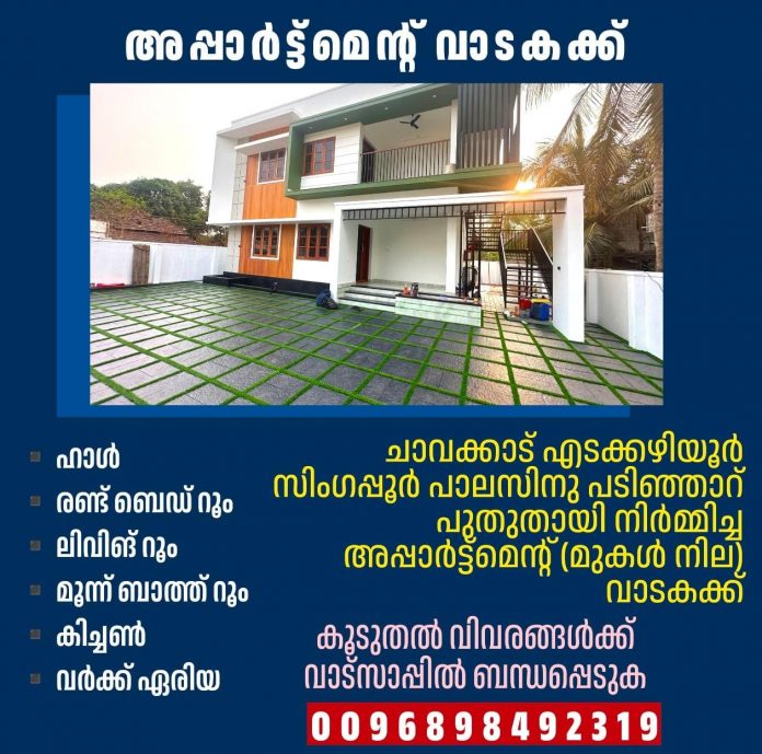 FEATURED ചാവക്കാട് എടക്കഴിയൂർ സിംഗപ്പൂർ പാലസിനു പടിഞ്ഞാറ് പുതുതായി നിർമ്മിച്ച അപ്പാർട്ട്മെൻ്റ് (മുകൾ നില) വാടകയ്ക്ക് By circlelivenews February 10, 2026 - 12:06 PM 0 198 Share FacebookTwitterPinterestWhatsApp ഹാൾ രണ്ട് ബെഡ് റൂം ലിവിങ് റൂം മൂന്ന് ബാത്ത് റൂം കിച്ചൺ വർക്ക് ഏരിയ കൂടുതൽ വിവരങ്ങൾക്ക് വാട്സാപ്പിൽ ബന്ധപ്പെടുക 0096898492319 Tagsചാവക്കാട്തൃശൂർ Share FacebookTwitterPinterestWhatsApp Previous articleചാവക്കാട് ഇനി Climaxo റമദാൻ സെയിൽNext articleനിങ്ങൾക്ക് ജോലി വേണോ? circlelivenewshttp://Circlelivenews.com RELATED ARTICLES FEATURED നിങ്ങൾക്ക് ജോലി വേണോ? February 10, 2026 - 2:13 PM FEATURED ചാവക്കാട് ഇനി Climaxo റമദാൻ സെയിൽ February 10, 2026 - 10:38 AM FEATURED ഗുരുവായൂർ ക്ഷേത്രം വടക്കേ നട ഗേറ്റ് വരെയുള്ള റോഡിൽ ഇന്ന് ഗതാഗത നിയന്ത്രണം February 9, 2026 - 3:31 PM - Advertisment - Most Popular നിങ്ങൾക്ക് ജോലി വേണോ? February 10, 2026 - 2:13 PM ചാവക്കാട് ഇനി Climaxo റമദാൻ സെയിൽ February 10, 2026 - 10:38 AM ഗുരുവായൂർ ക്ഷേത്രം വടക്കേ നട ഗേറ്റ് വരെയുള്ള റോഡിൽ ഇന്ന് ഗതാഗത നിയന്ത്രണം February 9, 2026 - 3:31 PM വർഷത്തിൽ 10 ലക്ഷം രൂപ വരെ വരുമാനം നേടി ഇന്ത്യയിലെ പ്രമുഖ ധനകാര്യ സ്ഥാപനത്തിൽ പ്രവർത്തിക്കണോ? February 9, 2026 - 2:14 PM Load more Recent Comments
