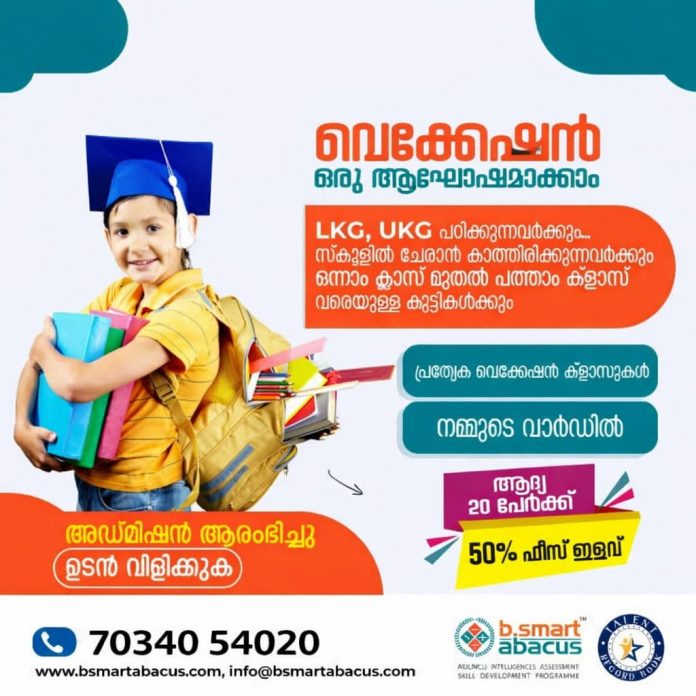 LKG , UKG പഠിക്കുന്നവർക്കും സ്കൂളിൽ ചേരാൻ കാത്തിരിക്കുന്നവർക്കും ഒന്നാം ക്ലാസ് മുതൽ പത്താം ക്ലാസ് വരെയുള്ള വിദ്യാർത്ഥികൾക്കും പ്രത്യേകം വെക്കേഷൻ ക്ലാസുകൾ