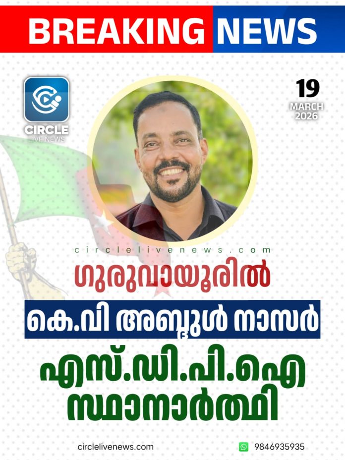 ഗുരുവായൂർ: ഗുരുവായൂർ നിയോജക മണ്ഡലത്തിൽ എസ്.ഡി.പി.ഐ സ്ഥാനാർത്ഥിയായി കെ വി അബ്ദുൽ നാസർ മത്സരിക്കും. നിലവിൽ എസ്.ഡി.പി.ഐ തൃശ്ശൂർ ജില്ലാ പ്രസിഡണ്ടാണ് അബ്ദുൾ നാസർ. എസ്.ഡി.പി.ഐ സംസ്ഥാന പ്രസിഡണ്ട് സി.പി.എ ലത്തീഫാണ് കെ.വി അബ്ദുൾ നാസർ ഉൾപ്പെടെയുള്ള സ്ഥാനാർത്ഥികളെ പ്രഖ്യാപിച്ചത്.