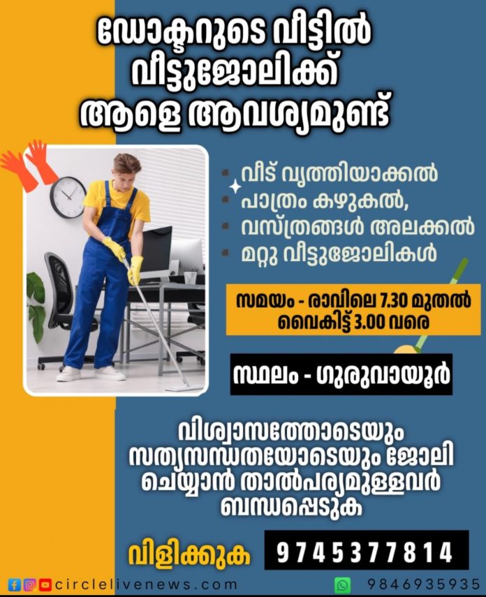 വിശ്വാസത്തോടെ സത്യസന്ധതയോടെ ജോലി ചെയ്യുന്ന താൽപര്യമുള്ളവർ മാത്രം ബന്ധപ്പെടുക