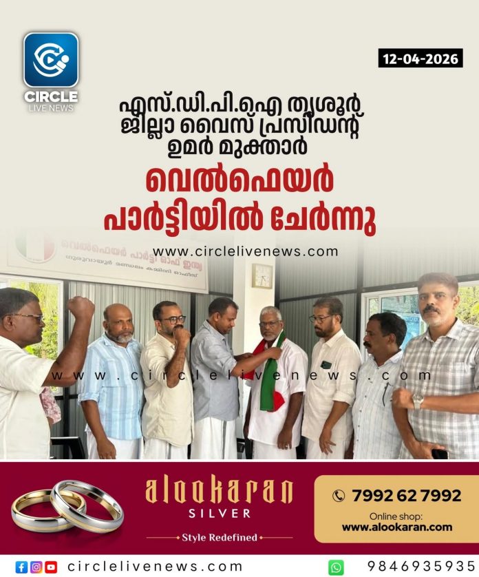 എസ്.ഡി.പി.ഐ തൃശൂർ ജില്ലാ വൈസ് പ്രസിഡൻ്റ് ഉമർ മുക്താർ വെൽഫെയർ പാർട്ടിയിൽ ചേർന്നു