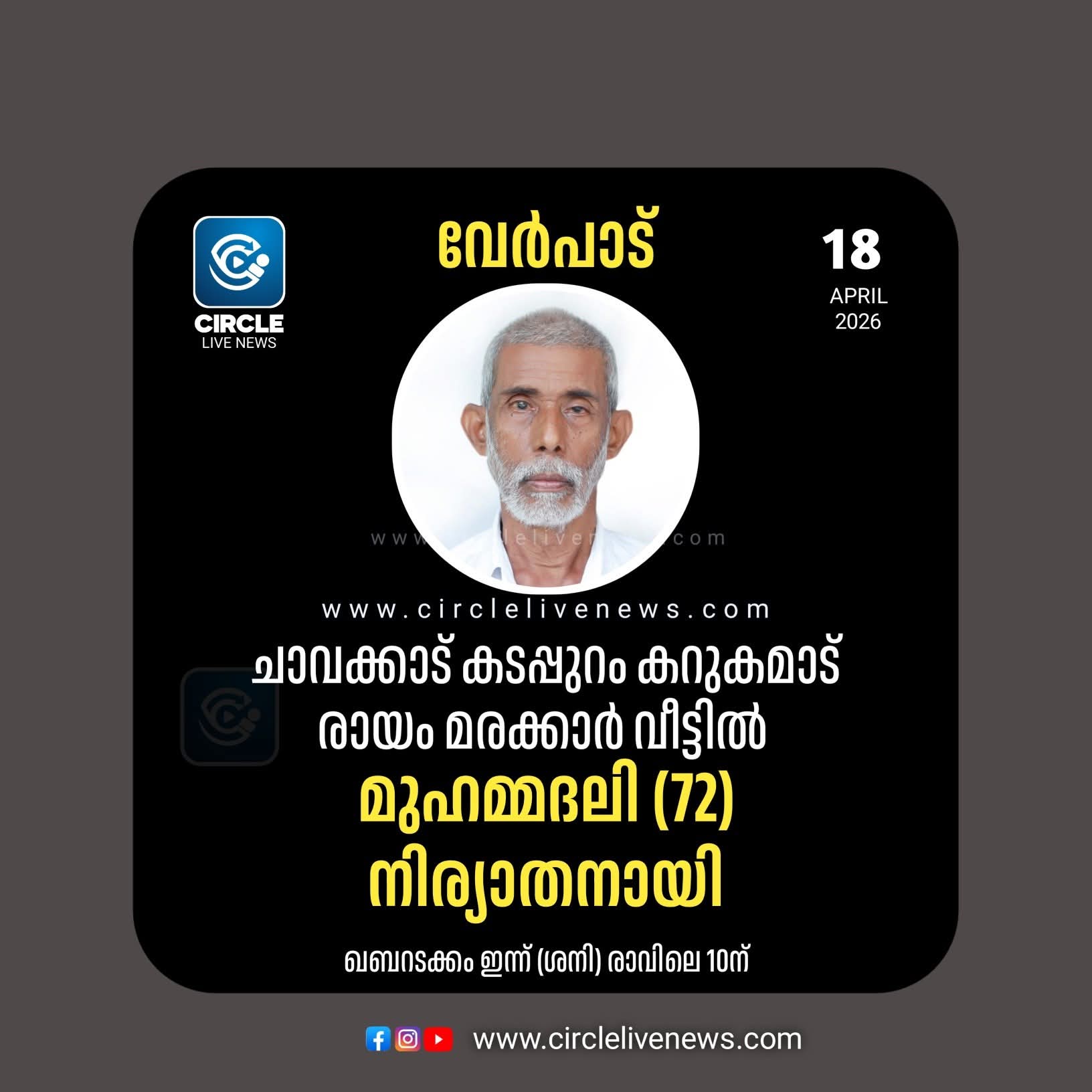 ചാവക്കാട്: കടപ്പുറം കറുകമാട് രായം മരക്കാർ വീട്ടിൽ മുഹമ്മദലി (72) നിര്യാതനായി. ഖബറടക്കം ഇന്ന് (ശനി) രാവിലെ 10 ന് കറുകമാട് ജുമാമസ്ജിദ് ഖബർസ്ഥാനിൽ നടക്കും.